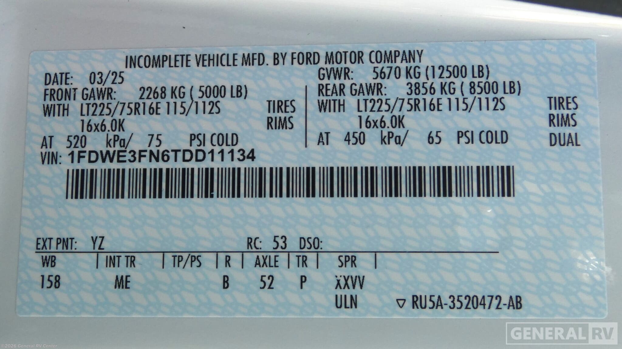 - VIN1FDWE3FN6TDD11134