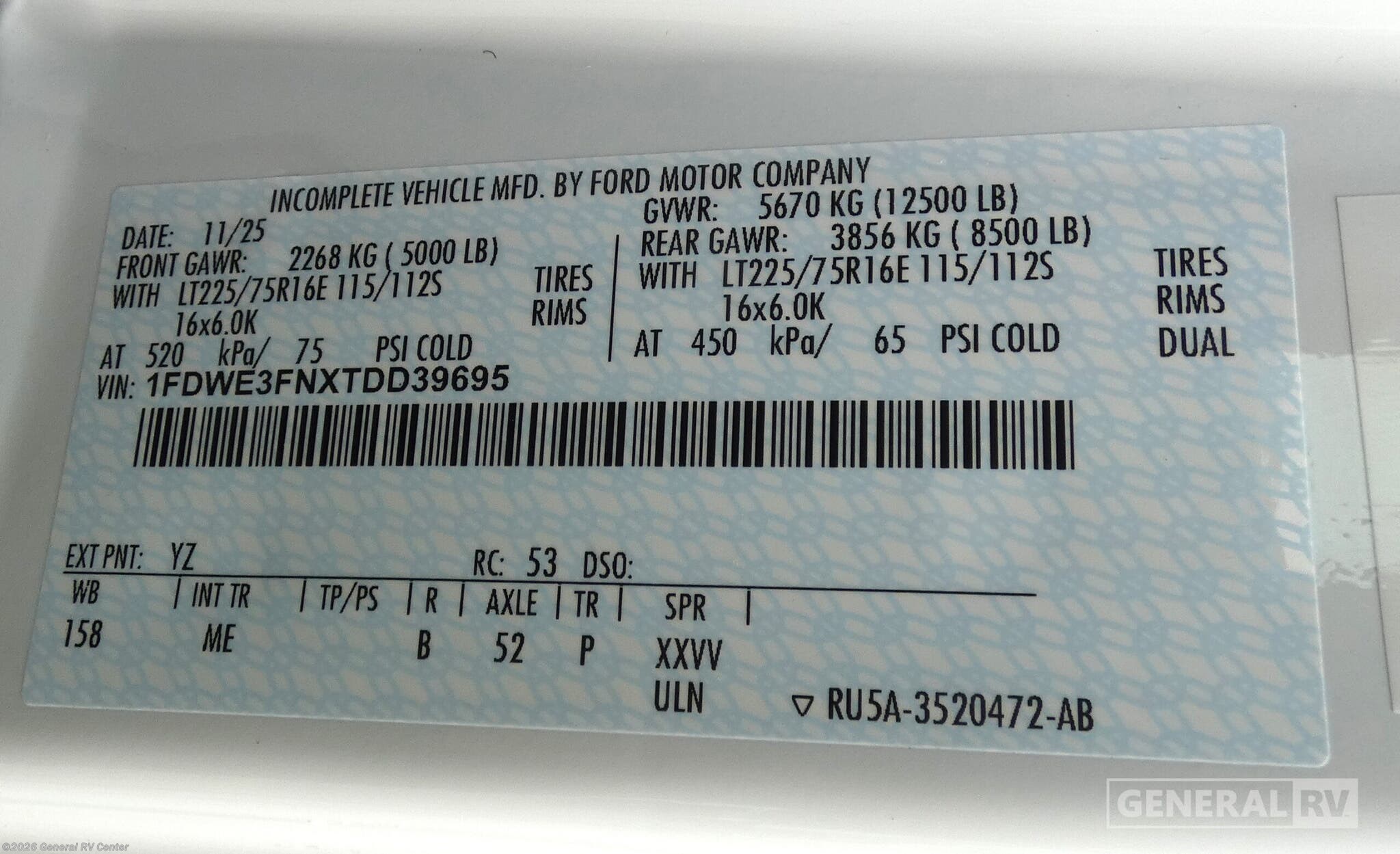 - VIN1FDWE3FNXTDD39695