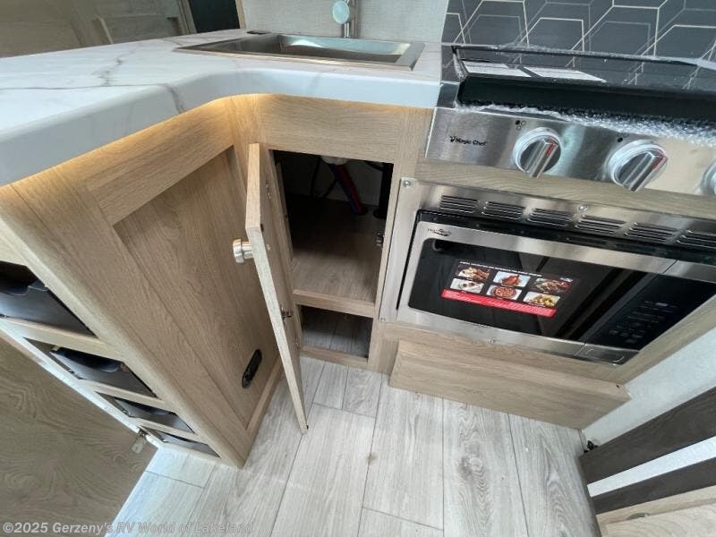 The worst thing you do could is pass up this Leprechaun Class C gas motorhome! This coach is filled with exceptionally helpful amenities, like the flip-down extension in the kitchen, the J-lounge with 18" extension, the full bathroom to stay clean throughout your trip. You have lots of great options with this coach because there is an optional outdoor kitchen table you can add as well as an optional outdoor entertainment center or optional power recliners. The two slides create extra space on the interior for you to relax, and the swing-arm TV will be fun to watch.