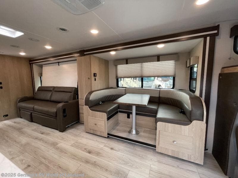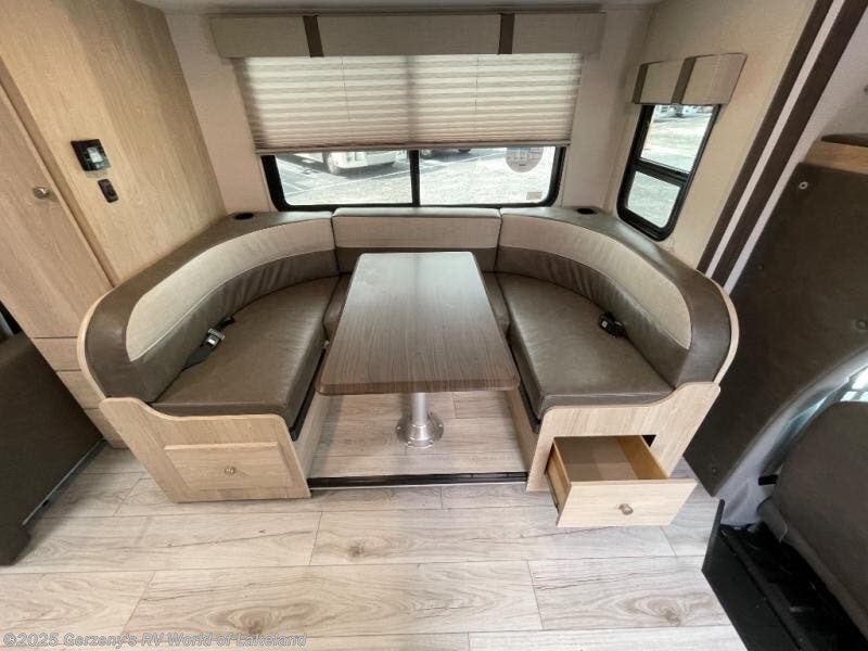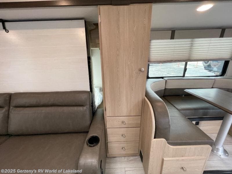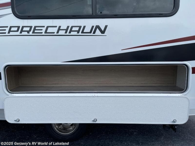 With each Leprechaun Class C gas motorhome by Coachmen you will enjoy "better" interior appointments, like the residential-sized beds, on-demand tankless water heater, and 15,000 BTU A/C. A dash radio and a backup monitor will let you easily navigate the open road like pro. There are also pleated night shades inside, along with premium vinyl flooring, a shower skylight, and USB charging ports to name a few comforts and conveniences. The Leprechaun is constructed with composite sidewall and cabover floor construction plus a seamless one-piece roof material for a durable motorhome made to last.