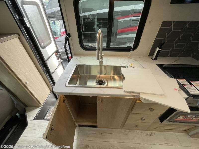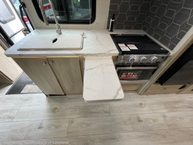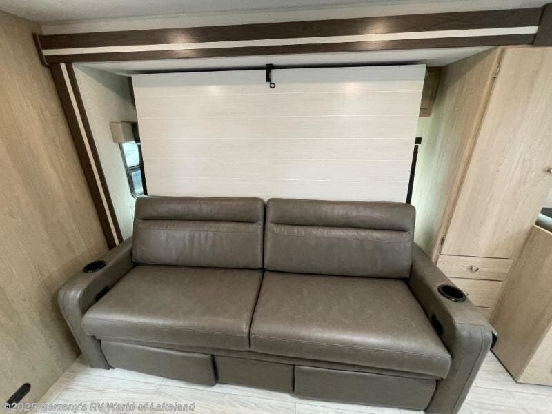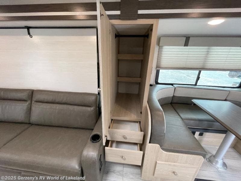 Your small family will love traveling in this motorhome! This coach is filled with exceptionally helpful amenities, like the pull-out extension in the kitchen, the 44" x 82" U-shaped dinette, the full bathroom with a 30" x 36" shower, and the optional fireplace. The chef will have an easy time cooking in the fully equipped kitchen, but also love cooking at the outside kitchen, plus there is outside storage for all of your gear and an optional outside TV for entertainment. You will get a good night's rest each night on the 72" x 74" king Murphy bed and the kiddos can sleep on the 57" x 80" bunk over cab!