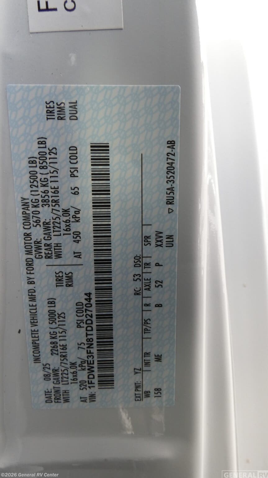 - VIN1FDWE3FN8TDD27044