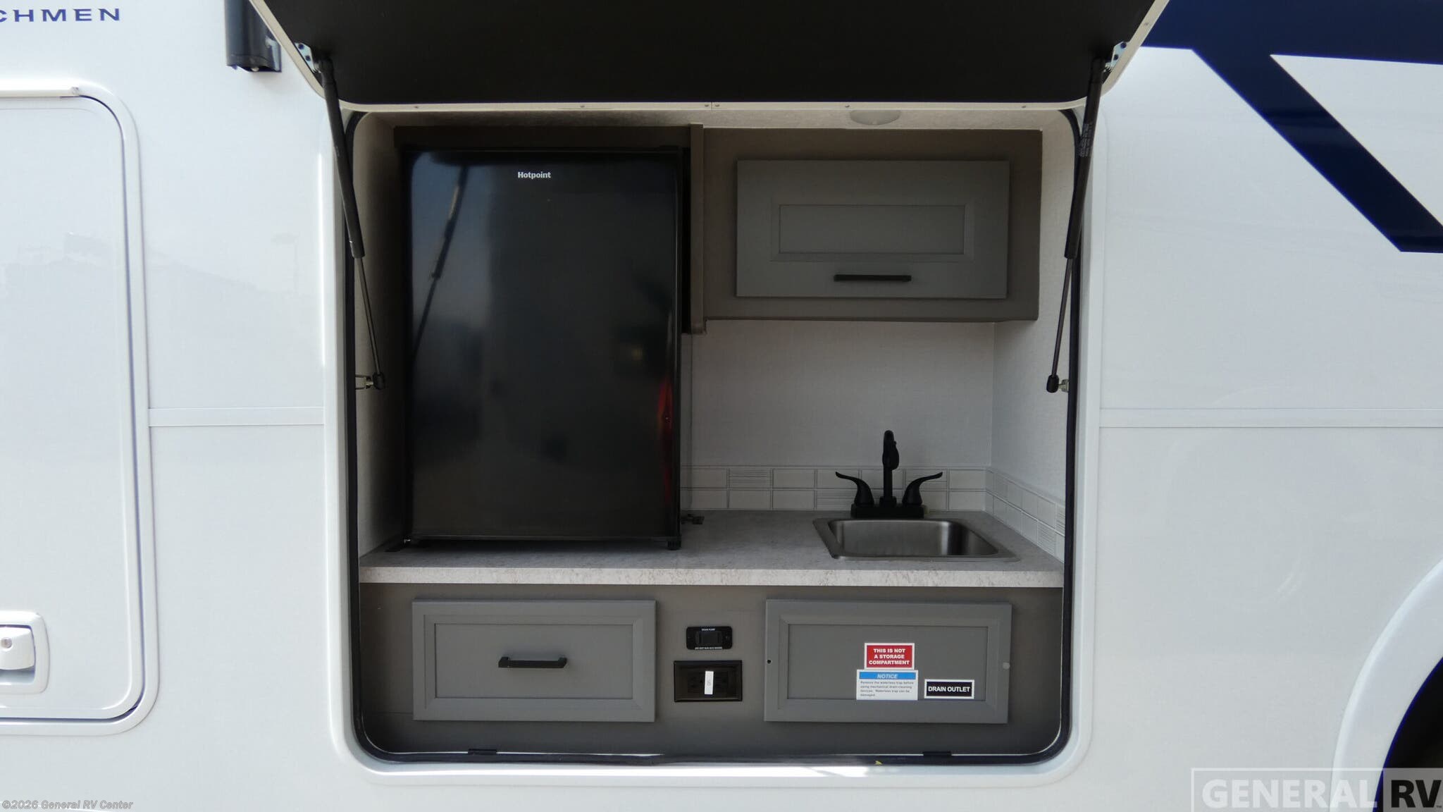 You and your family will be fascinated with this motor home. Perfect for family and guests due to its plenty of room to sleep, like the 70" x 74" king bed for a couple, 78" sofa with bed for kids and the 47" x 81" overhead bunk where two more people can easily fit. This unit is equipped with all the facilities need for a comfortable ride starting with a full bathroom with a 30" x 36" shower, interior kitchen with fridge, farm sink, three cooktop burners, microwave and a 42" x 76" dinette ideal to eat the dinner comfortably. You can also have relaxing and entertaining time whether watching the TV in the living room while enjoying the fireplace or in the 32" bedroom LED TV. In this motorhome, you will also find plenty of space to store your stuff in diverse parts, like wardrobe, dresser, and overhead cabinets in the bedroom area, as well as linen/ pantry and overhead cabinets in the kitchen area. Finally, enjoy the nicest meals in the outdoor kitchen, allowing you to have a great time having food while admiring the surroundings. Each Mirada Class A gas motorhome by Coachmen is constructed with a crowned, laminated fiberglass roof with Azdel Superlite composite for added durability, along with high gloss gelcoat sidewalls. There is a 7.3L V8 engine on a Ford F53 chassis for power you can feel, and a 10" touch screen radio with AM/FM radio with Bluetooth capability. The 5.5 kW gas generator, dual coach batteries, and 100W solar panel with a controller will meet all your power needs, and the automatic leveling jacks make setting up camp a breeze. Head inside to find premium linoleum throughout, hardwood cabinet doors, kitchen tile backsplash, and solar privacy shades throughout to name a few comforts. The open road is yours for the taking in a Mirada Class A gas motorhome!