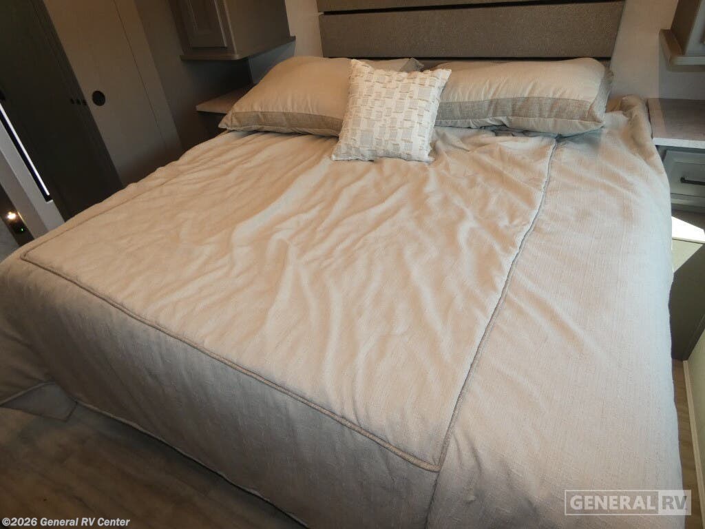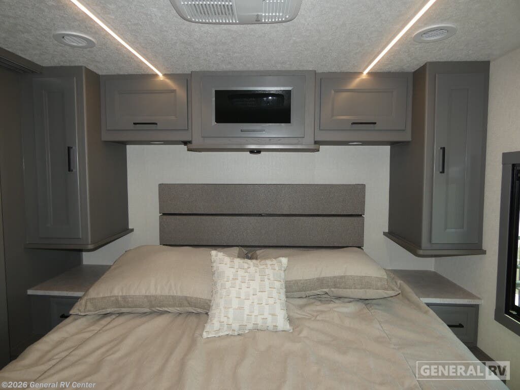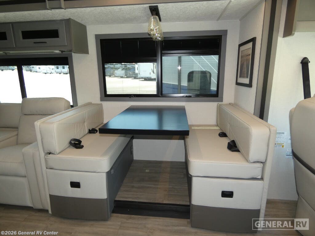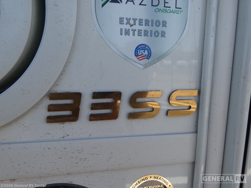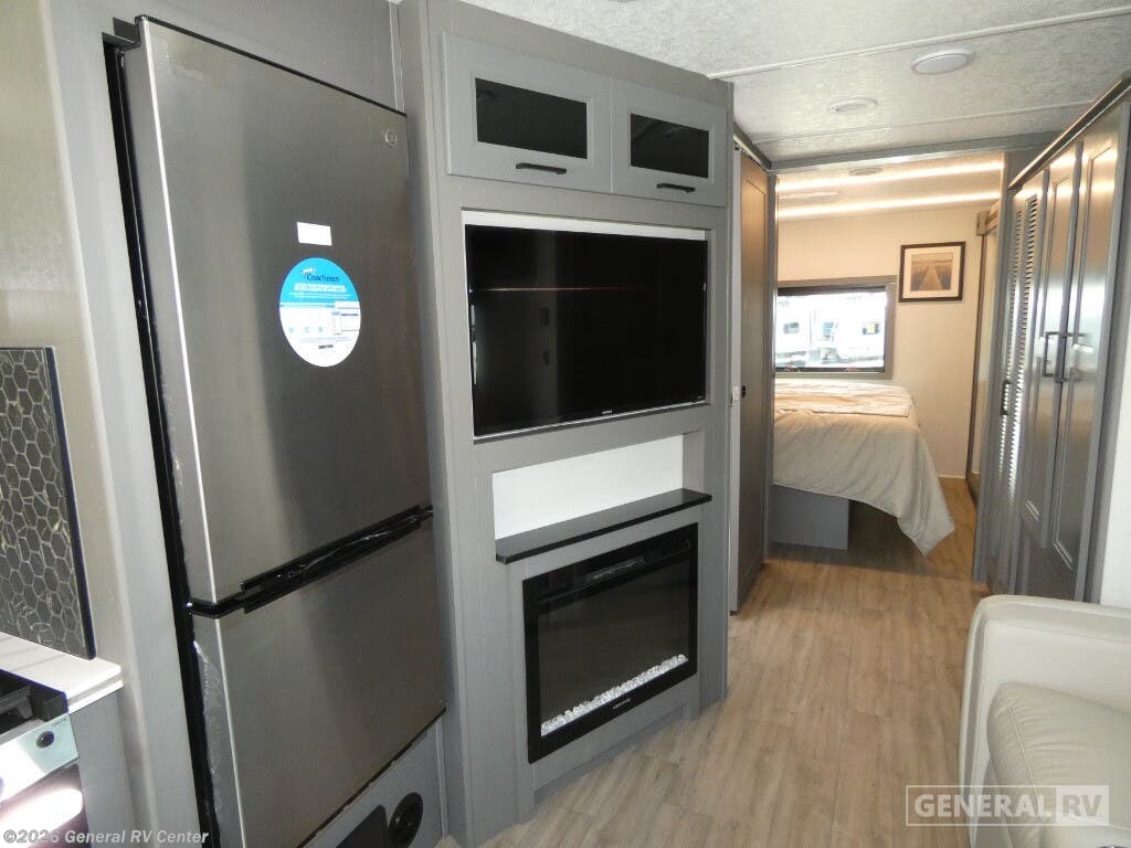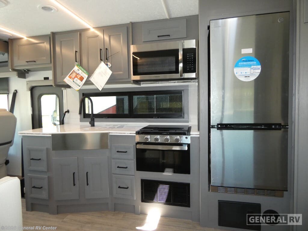 Experience the open road in style with the 2026 Coachmen Mirada 33SS. This motorhome combines luxury and functionality in a spacious design that can comfortably sleep up to eight people. The rear bedroom is a sanctuary with a king-sized bed, LED TV, and ample storage, making it perfect for unwinding after a day of adventure. Moving through the RV, you'll find a well-equipped center kitchen featuring a full-size refrigerator and a charming farmhouse sink, ideal for preparing meals with ease. The adjacent living area boasts a cozy sofa with a convertible bed and a dinette that also transforms into a sleeping space, ensuring comfort for all your guests. The Mirada 33SS stands out with its thoughtful amenities, including a stackable washer/dryer prep, ensuring you're always ready for extended travels. The front living area is perfect for entertainment, featuring an LED TV and a fireplace, creating a warm and inviting atmosphere. The exterior offers a 25 ft. manual awning, providing a perfect outdoor space to relax and enjoy the surroundings. Built on a robust Ford F53 chassis with a powerful 335 horsepower engine, this RV promises a smooth ride wherever your journey takes you. For more details or to see this beauty in person, visit your nearest General RV dealership.
