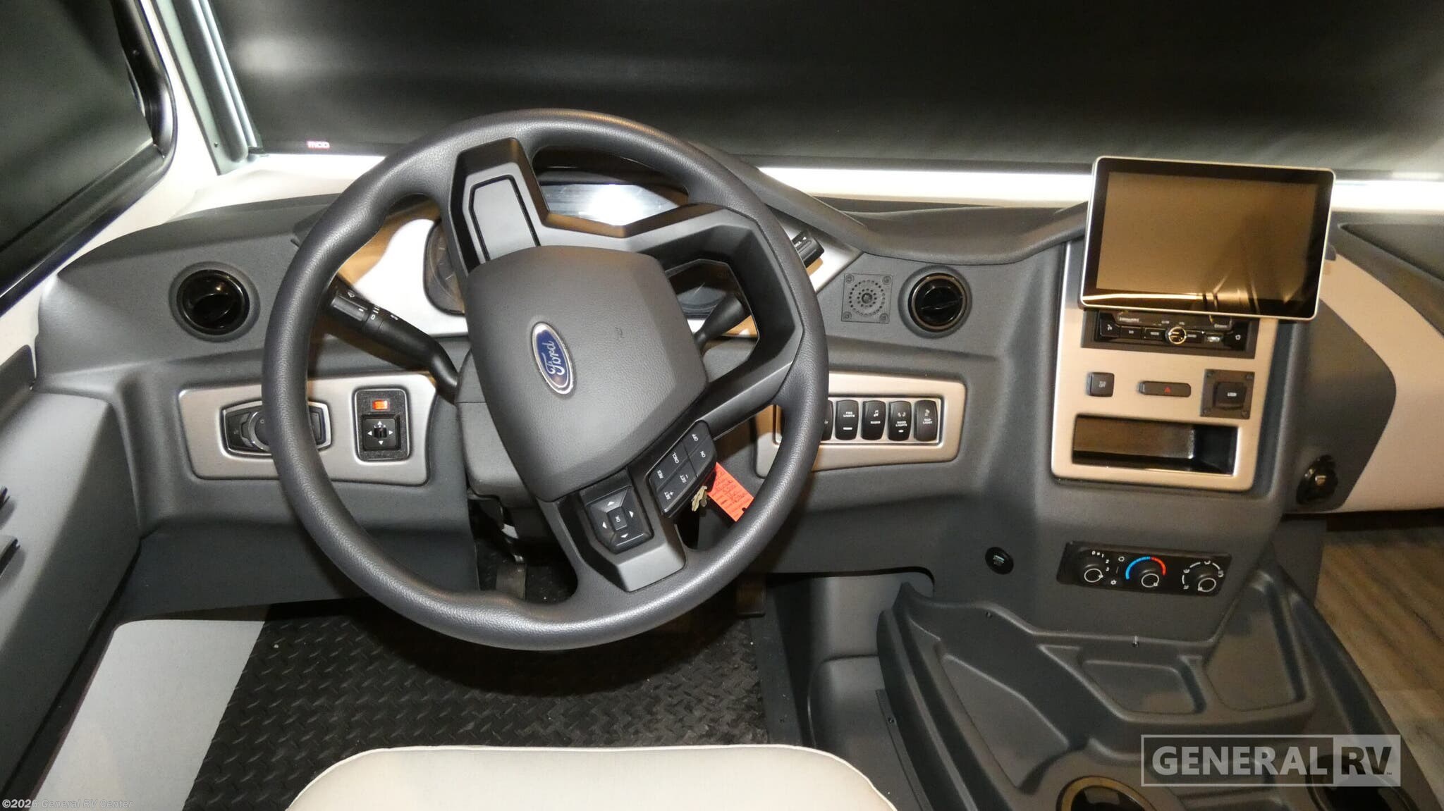 You and your family will be fascinated with this motor home. Perfect for family and guests due to its plenty of room to sleep, like the 70" x 74" king bed for a couple, 78" sofa with bed for kids and the 47" x 81" overhead bunk where two more people can easily fit. This unit is equipped with all the facilities need for a comfortable ride starting with a full bathroom with a 30" x 36" shower, interior kitchen with fridge, farm sink, three cooktop burners, microwave and a 42" x 76" dinette ideal to eat the dinner comfortably. You can also have relaxing and entertaining time whether watching the TV in the living room while enjoying the fireplace or in the 32" bedroom LED TV. In this motorhome, you will also find plenty of space to store your stuff in diverse parts, like wardrobe, dresser, and overhead cabinets in the bedroom area, as well as linen/ pantry and overhead cabinets in the kitchen area. Finally, enjoy the nicest meals in the outdoor kitchen, allowing you to have a great time having food while admiring the surroundings. Each Mirada Class A gas motorhome by Coachmen is constructed with a crowned, laminated fiberglass roof with Azdel Superlite composite for added durability, along with high gloss gelcoat sidewalls. There is a 7.3L V8 engine on a Ford F53 chassis for power you can feel, and a 10" touch screen radio with AM/FM radio with Bluetooth capability. The 5.5 kW gas generator, dual coach batteries, and 100W solar panel with a controller will meet all your power needs, and the automatic leveling jacks make setting up camp a breeze. Head inside to find premium linoleum throughout, hardwood cabinet doors, kitchen tile backsplash, and solar privacy shades throughout to name a few comforts. The open road is yours for the taking in a Mirada Class A gas motorhome!