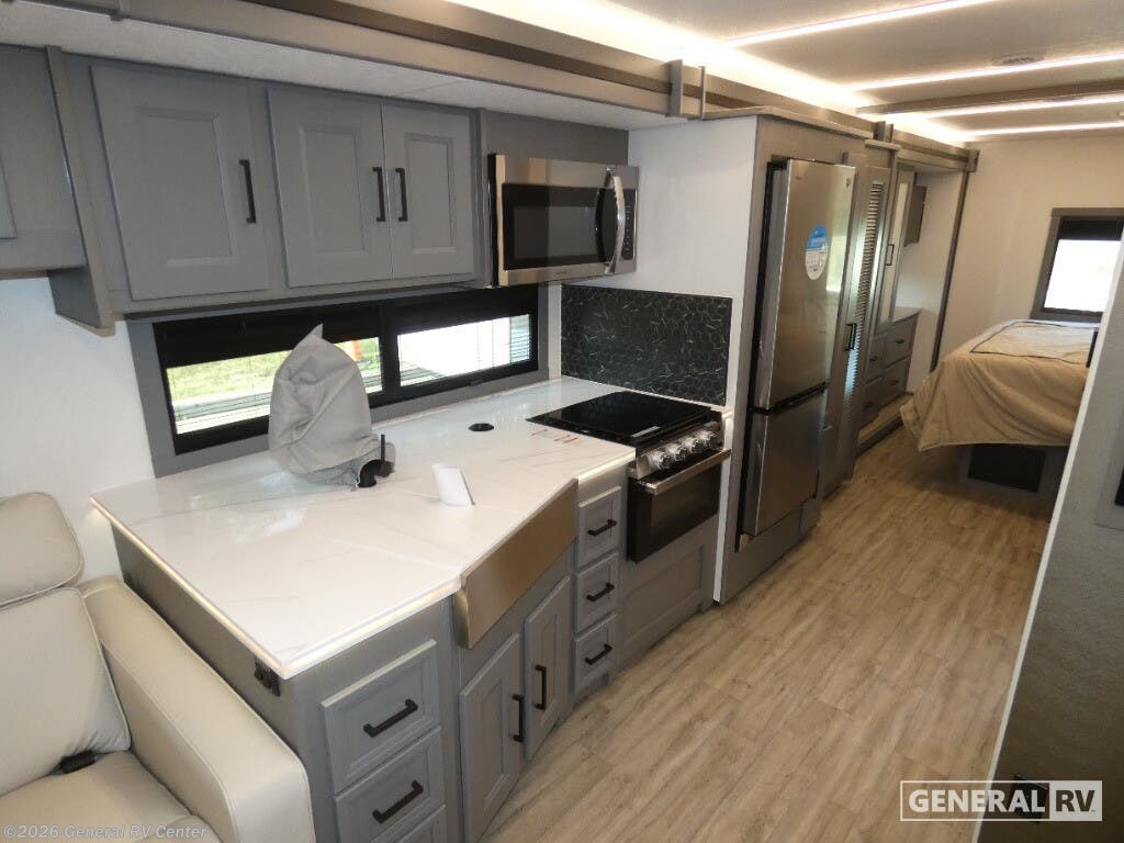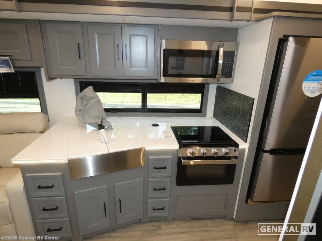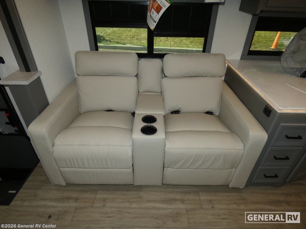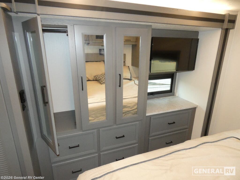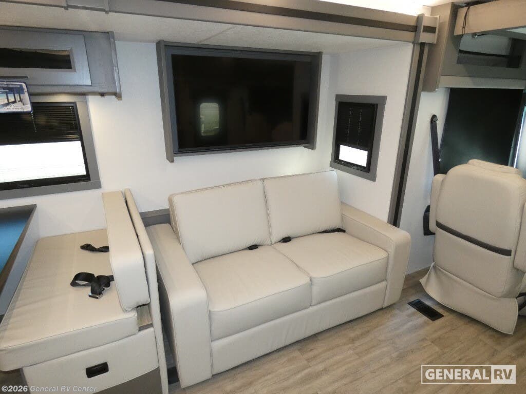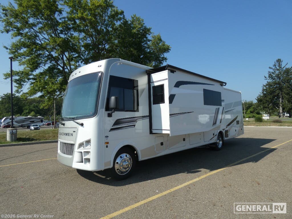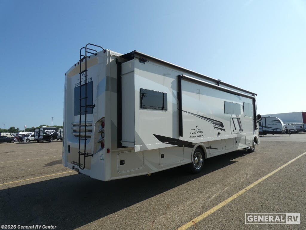 Experience the 2026 Coachmen Mirada 35OS, where luxury meets practicality in a spacious design perfect for family adventures. This motorhome, built on a robust Ford F53 chassis, offers a powerful 335 horsepower engine, ensuring a smooth journey wherever the road takes you. With its 36.83-foot length and two slide-outs, you’ll find ample room to relax and entertain. The interior boasts a front living area with a cozy 68" sofa and a 42" x 78" dinette, perfect for gathering with loved ones. The kitchen, equipped with a three-burner cooktop and full-size electric refrigerator, invites you to create culinary delights on the go. Retreat to the rear bedroom, where a plush king bed awaits, offering a serene escape after a day of exploration. The center bathroom, with a convenient shower, ensures comfort and privacy. This model is thoughtfully designed with a washer/dryer prep area, making extended trips a breeze. Outside, enjoy the 20 ft. powered retractable awning, providing shade and comfort for outdoor relaxation. With a towing capacity of 8,000 lbs, bring along your favorite toys or a small vehicle for even more adventure. Visit your nearest General RV dealership to explore the Coachmen Mirada 35OS and start planning your next great journey!