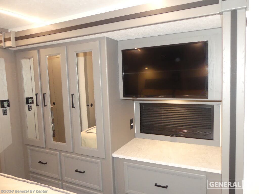 Experience the 2026 Coachmen Mirada 35OS, where luxury meets practicality in a spacious design perfect for family adventures. This motorhome, built on a robust Ford F53 chassis, offers a powerful 335 horsepower engine, ensuring a smooth journey wherever the road takes you. With its 36.83-foot length and two slide-outs, you’ll find ample room to relax and entertain. The interior boasts a front living area with a cozy 68" sofa and a 42" x 78" dinette, perfect for gathering with loved ones. The kitchen, equipped with a three-burner cooktop and full-size electric refrigerator, invites you to create culinary delights on the go. Retreat to the rear bedroom, where a plush king bed awaits, offering a serene escape after a day of exploration. The center bathroom, with a convenient shower, ensures comfort and privacy. This model is thoughtfully designed with a washer/dryer prep area, making extended trips a breeze. Outside, enjoy the 20 ft. powered retractable awning, providing shade and comfort for outdoor relaxation. With a towing capacity of 8,000 lbs, bring along your favorite toys or a small vehicle for even more adventure. Visit your nearest General RV dealership to explore the Coachmen Mirada 35OS and start planning your next great journey!