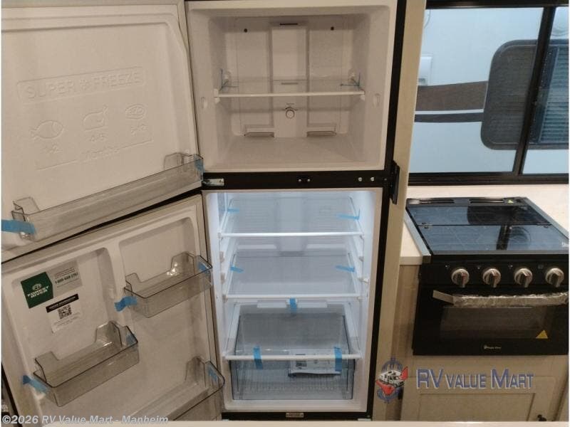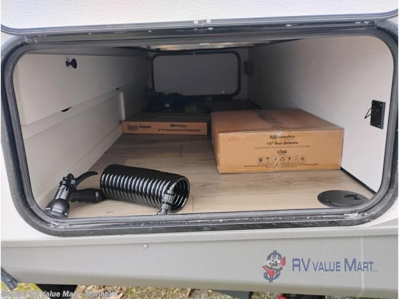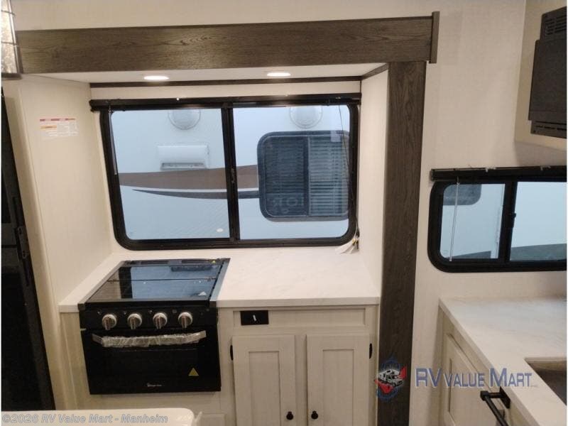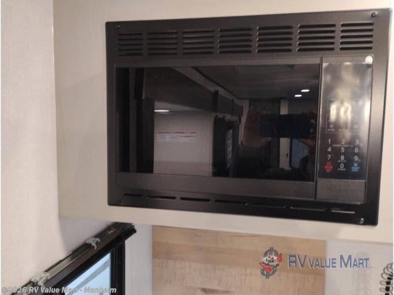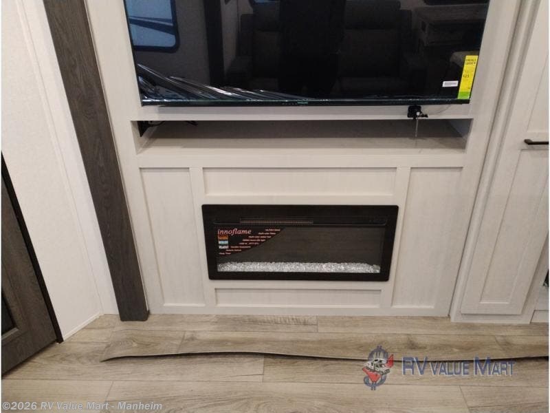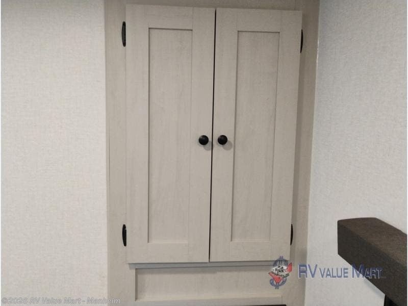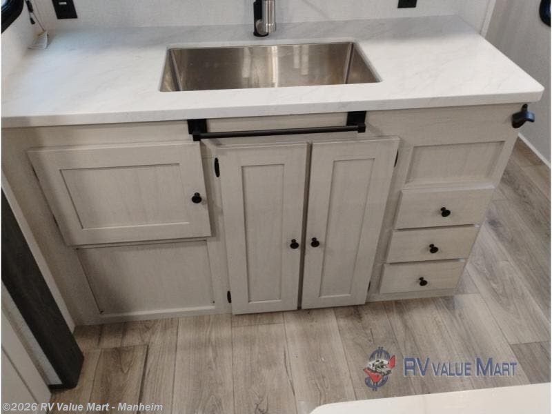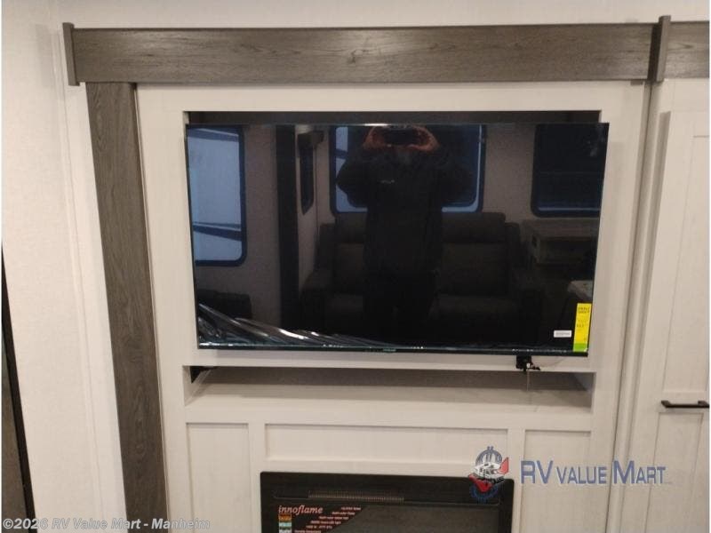 Escape to a world of adventure and relaxation with this incredible travel trailer! The rear living area is a dynamic hub of entertainment, featuring a versatile tri-fold sofa and a premium theater seat that lets you immerse yourself in your favorite shows or movies. The cutting-edge entertainment center provides endless hours of fun. Equipped with top-of-the-line appliances, including a spacious refrigerator, three-burner range, and microwave, the kitchen is a culinary haven. The functional kitchen island provides additional counter space, while the generous walk-in pantry and ample overhead cabinets keep your kitchen essentials organized and within easy reach. The front bedroom is a serene sanctuary, featuring a comfortable queen bed with plenty of storage under it and spacious wardrobes on each side of the bed, ideal for keeping your favorite outfits organized and free of dirt.