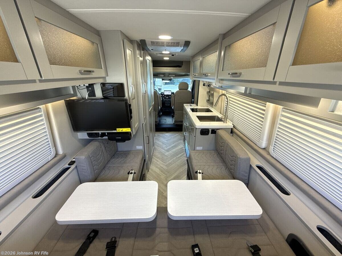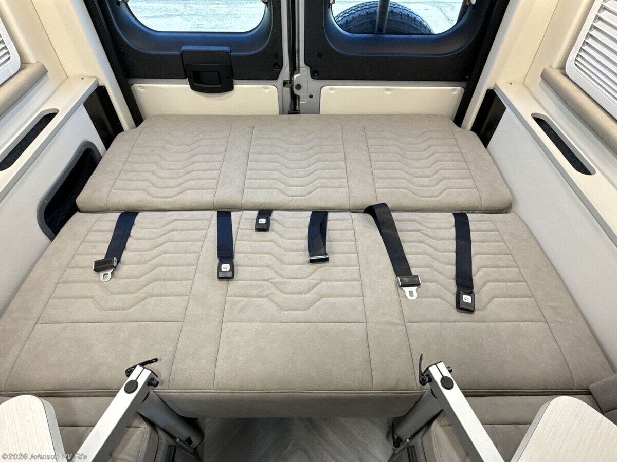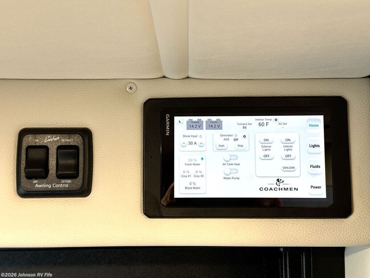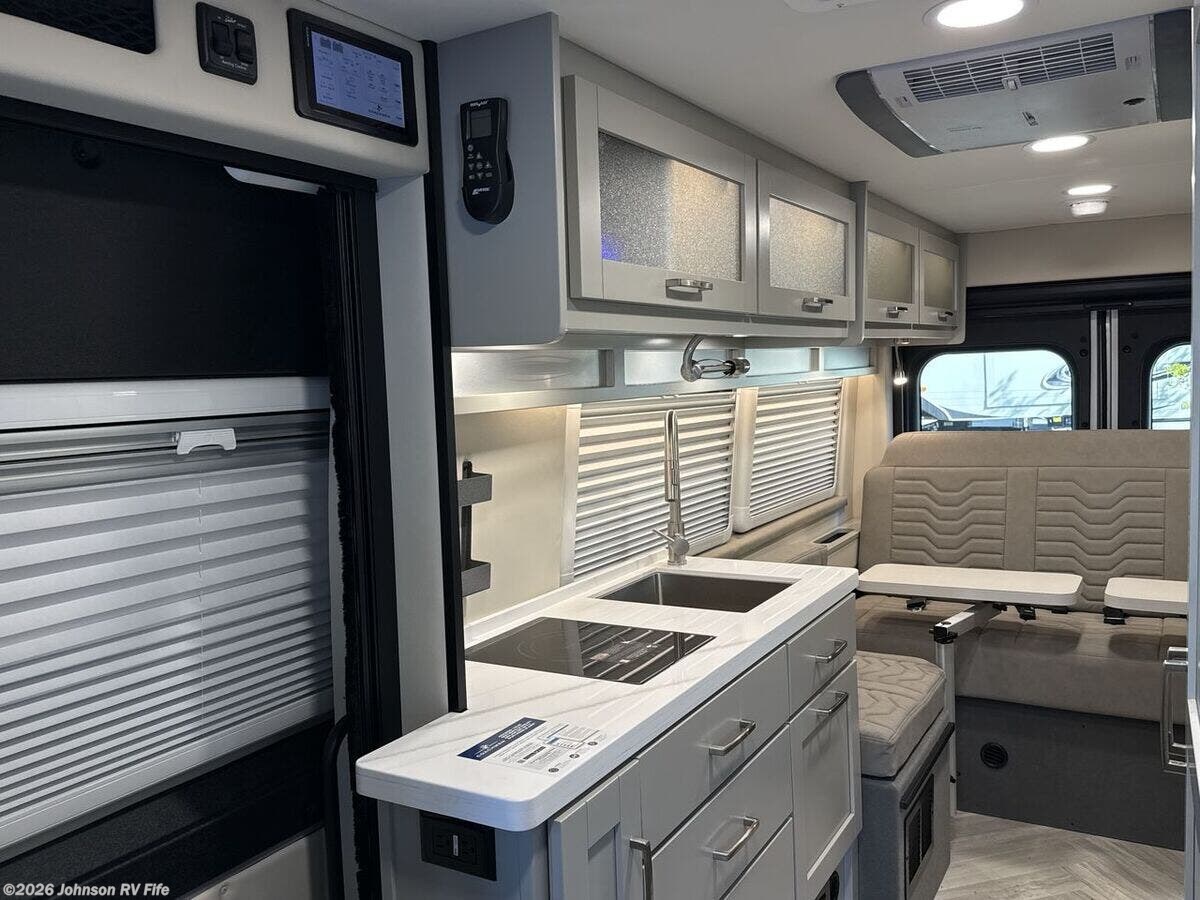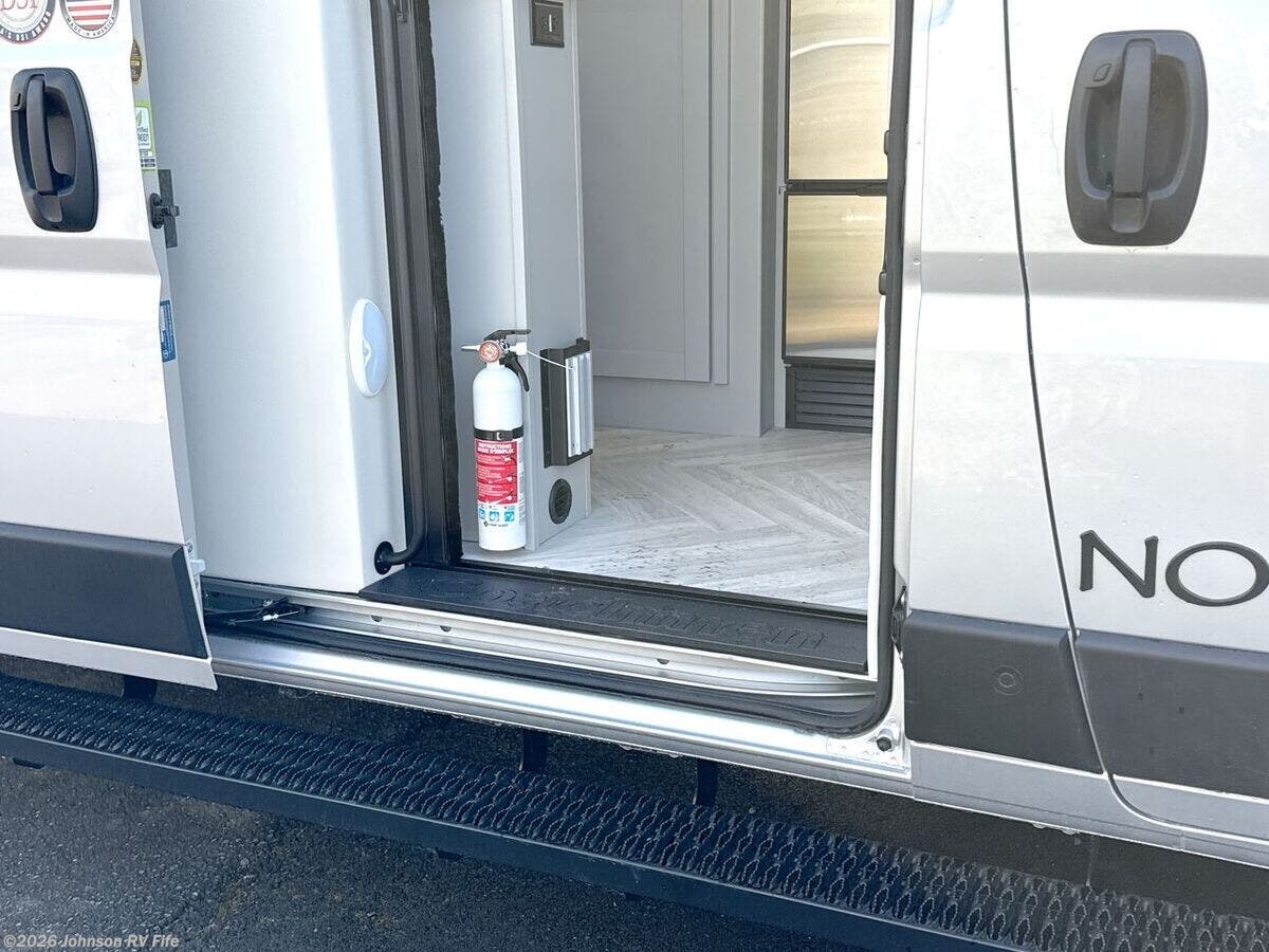 Introducing the 2026 Coachmen Nova, a new and remarkable Class B RV designed for adventure enthusiasts and comfort seekers alike. Built on the robust RAM ProMaster 3500 chassis, this vehicle is powered by a 3.6L V6, 24-valve gas engine delivering 280 horsepower, ensuring a reliable and efficient drive. With an odometer reading of just 22 miles, this RV offers a pristine start to countless journeys. **Exterior and Build:** - Equipped with Sumo Spring front and rear suspension for a smooth ride - 24-gallon fuel tank to support extended travels - Roof rack and ladder for extra storage and convenience - Solar reflective exterior pull-downs for added comfort - R-15 Rockwool insulation for superior climate control **Living Spaces:** - Elegant marine-grade PVC vinyl flooring - European dual-pane acrylic windows for enhanced insulation and noise reduction - High-quality solid hardwood cabinets - MaxxAir fan with rain sensor and remote for optimal ventilation - Front and rear swivel tables, providing flexibility in space usage **Kitchen and Dining:** - Stainless steel undermount sink with a high-rise pullout sprayer faucet - Nova Kool refrigerator to keep your food fresh - Induction cooktop and an air fryer convection microwave (except for the 20RB model) - Contemporary kitchen design for a delightful cooking experience **Technology and Entertainment:** - Firefly multiplex control system for easy management of vehicle functions - Sure Level tank sensors for accurate monitoring - King Olympus digital antenna and WiFi router with cell booster prep to keep you connected - 24-inch LED smart TV mounted on a swing arm bracket for entertainment on the go **Sleeping Arrangements:** - Convertible sofa bed with Q-Foam cushions for comfortable rest - Removable Lagun table to customize your living space - Ample overhead cabinet storage **Bathroom:** - Convenient wet bath with a fiberglass shower and Shower Miser water saver (not available in 20RB) - Features include a shower curtain, overhead light, sink with pullout spray faucet, and a cabinet or folding arm mirror - Toilet facilities designed for ease of use **Mechanical Features:** - 220w solar capability with two 110w solar panels - Three 115Ah AGM batteries providing a total of 345Ah - 30-amp weatherproof LED smart plug and a 2000w Xantrex inverter for reliable power - Auto generator start for added convenience - Efficient Truma Combi Eco Plus and Aventa 13.5k AC with dehumidifier and night modes - Fresh and black tanks positioned above the floor for optimal functionality Experience modern travel with the exhilarating 2026 Coachmen Nova. Perfectly suited for both short escapes and long adventures, it encapsulates the essence of freedom and comfort in an RV. ??