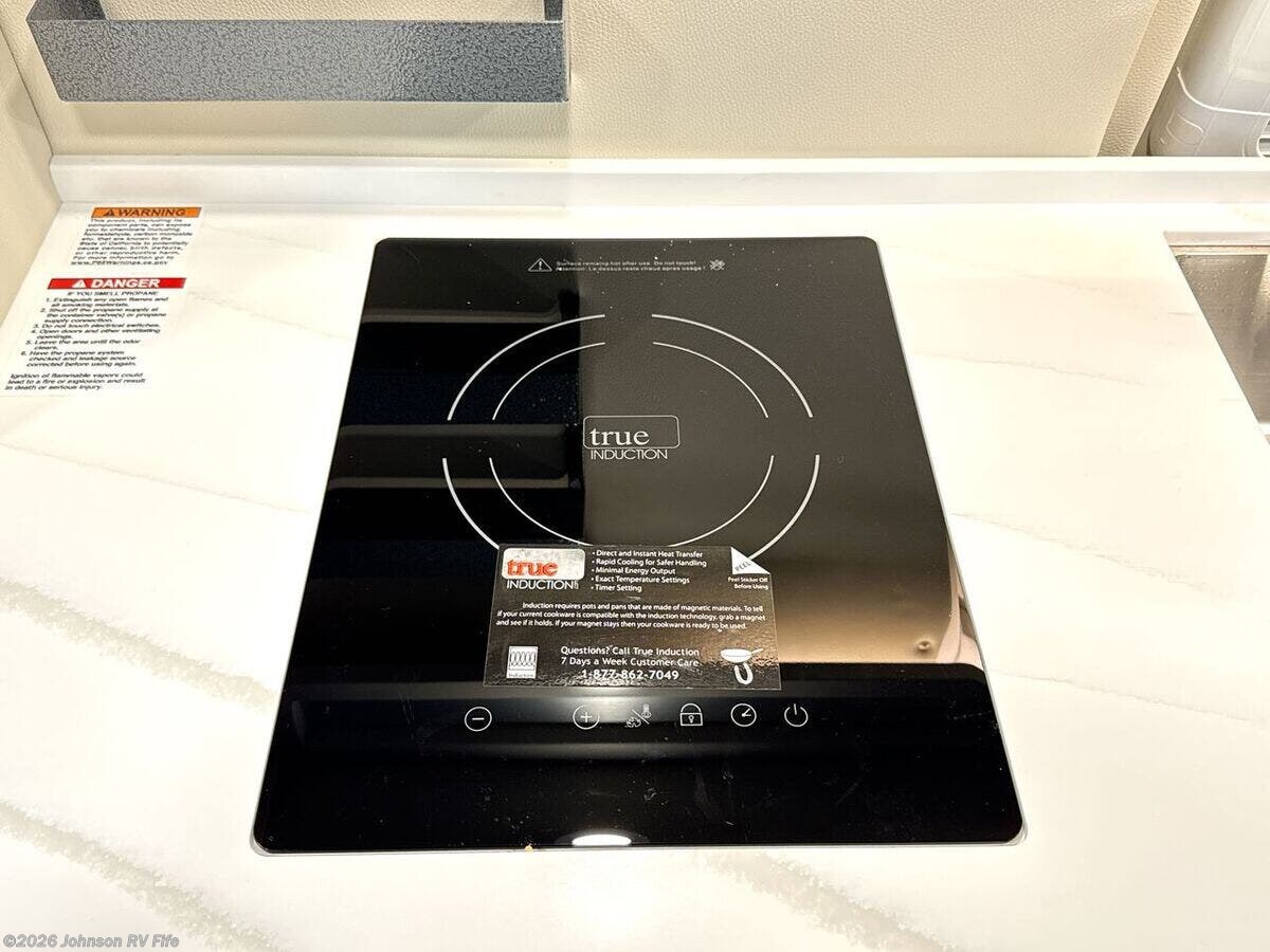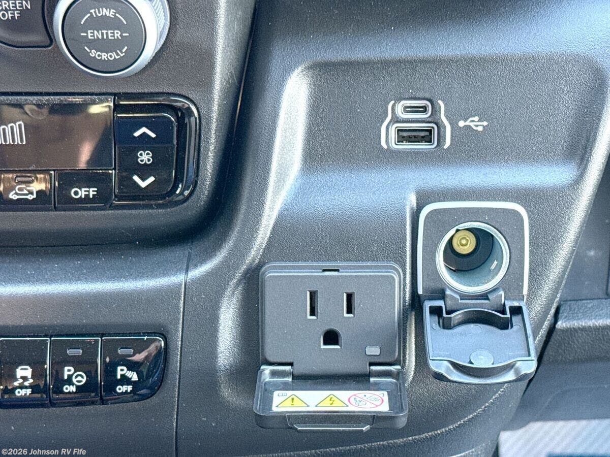 Features Include: 280 HP, Induction Cooktop, 24-inch LED Smart TV, Convertible Sofa Bed, Q-Foam Cushions, Wet Bath, Fiberglass Shower, Shower Curtain, Overhead Light, Toilet Mechanical, Auto Generator Start, Truma Combi Eco Plus, Roof Rack and Ladder