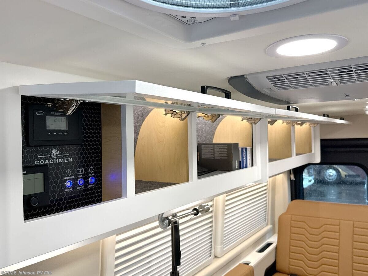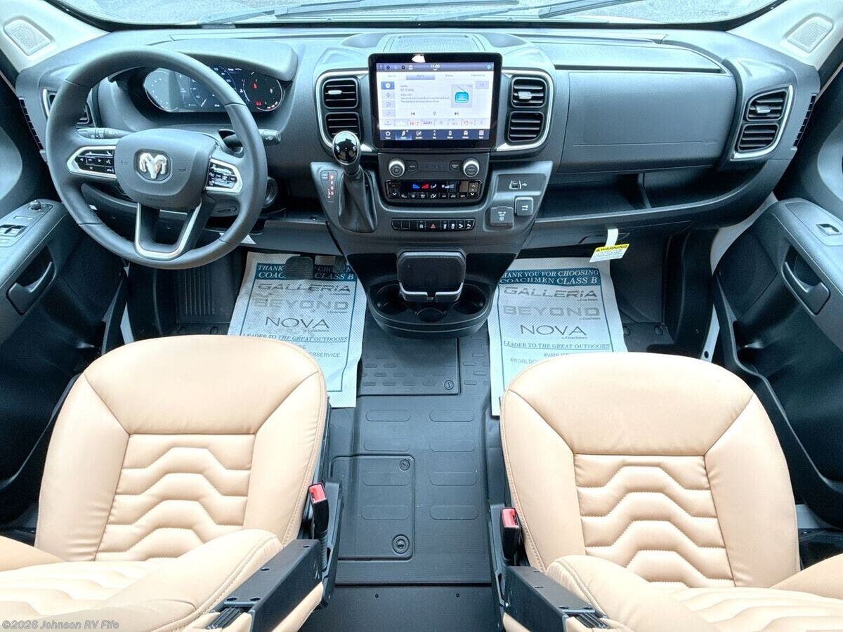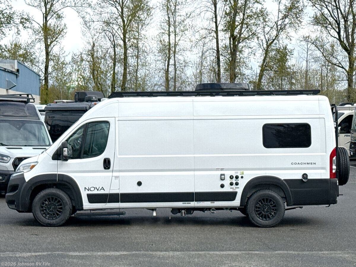 Introducing the 2026 Coachmen Nova, an exceptional Class B RV that promises both comfort and adventure on every journey. Built on the reliable RAM ProMaster 3500 chassis, this vehicle is powered by a robust 3.6L V6 24 Valve Gas Engine with 280 horsepower, ensuring a smooth and powerful drive. With a fuel capacity of 24 gallons and advanced Sumo Spring front and rear suspension, the Coachmen Nova is designed for stability and efficiency on the road. Step inside to the luxurious living spaces that feature marine-grade PVC vinyl flooring for durability and easy maintenance. The European dual pane acrylic windows and solar reflective exterior pull-downs optimize comfort and energy efficiency. This model includes front and rear swivel tables and cleverly designed sofa and jumpseat Q-Foam for versatile seating arrangements. For added convenience, you'll find solid hardwood cabinets and a MaxxAir fan with a rain sensor and remote control. In the dining area, this RV boasts a stainless steel undermount sink with a high-rise pullout sprayer faucet, making culinary tasks effortless. A Nova Kool refrigerator and induction cooktop cater to your cooking needs, paired with an air fryer convection microwave, excluding the 20RB model. Technology features are abundant in the Coachmen Nova, equipped with Firefly multiplex controls and Sure Level tank sensors for seamless management of RV systems. Stay connected and entertained with a King Olympus digital antenna, WiFi router and cell booster prep, and a 24-inch LED smart TV on a swing arm bracket. For restful nights, the sleeping area offers a removable Lagun table and a convertible sofa bed with supportive Q-Foam cushions, all underscored by the practicality of overhead cabinets for extra storage. The well-appointed bathroom comes with a wet bath setup, including a Shower Miser water saver (not available in the 20RB), fiberglass shower, shower curtain, overhead light, sink with pullout spray faucet, cabinet or folding arm mirror, and a convenient toilet. Regarding mechanical features, the Coachmen Nova is equipped with impressive 220w solar power from two 110w solar panels and three 115Ah AGM batteries, totaling 345Ah. A 30-Amp weatherproof LED smart plug, 2000w Xantrex inverter, and auto generator start further ensure off-grid capabilities. The RV also features fresh and black tanks above the floor, Truma Combi Eco Plus, Truma Aventa 13.5k AC, and a dual-function AC with dehumidifier and night modes. Completing the design, this RV includes an R-15 Rockwool insulation for enhanced thermal efficiency and a roof rack and ladder, ready to support your adventurous lifestyle. The 2026 Coachmen Nova is a well-rounded and sophisticated Class B RV that offers everything you need for both short getaways and extended travels, whether you're exploring familiar roads or new horizons. ???
