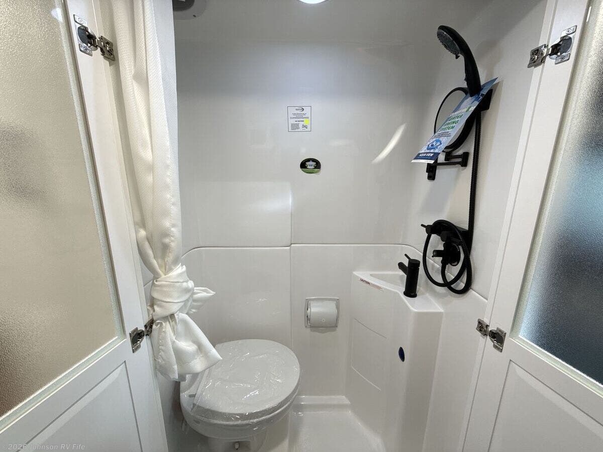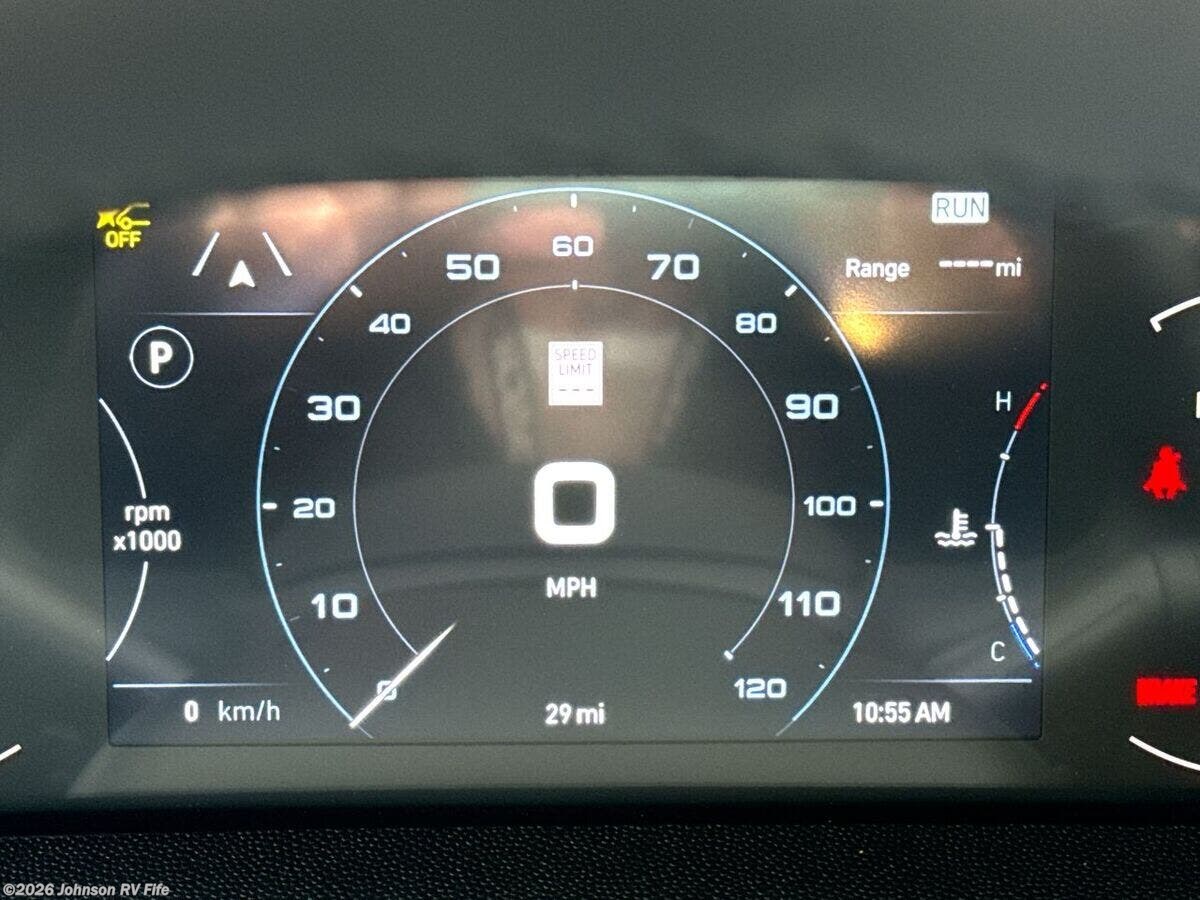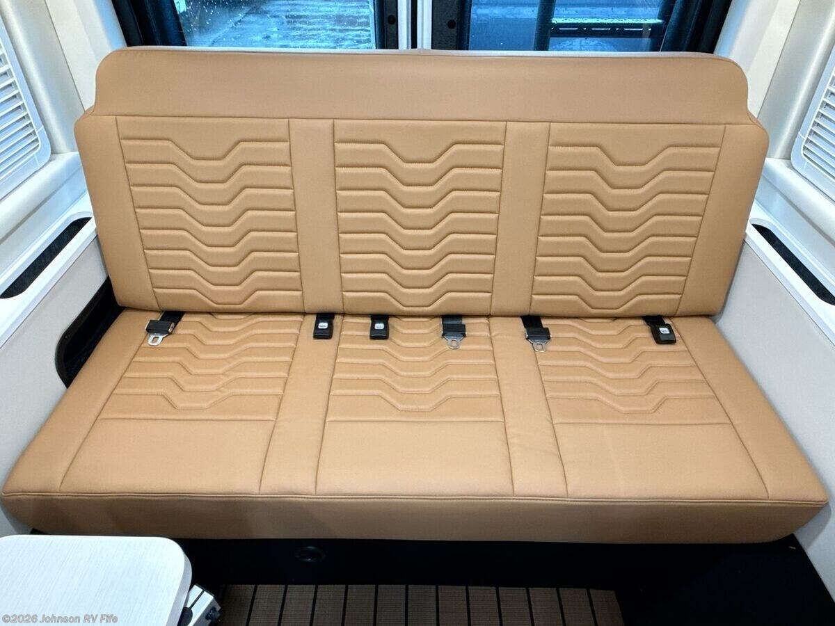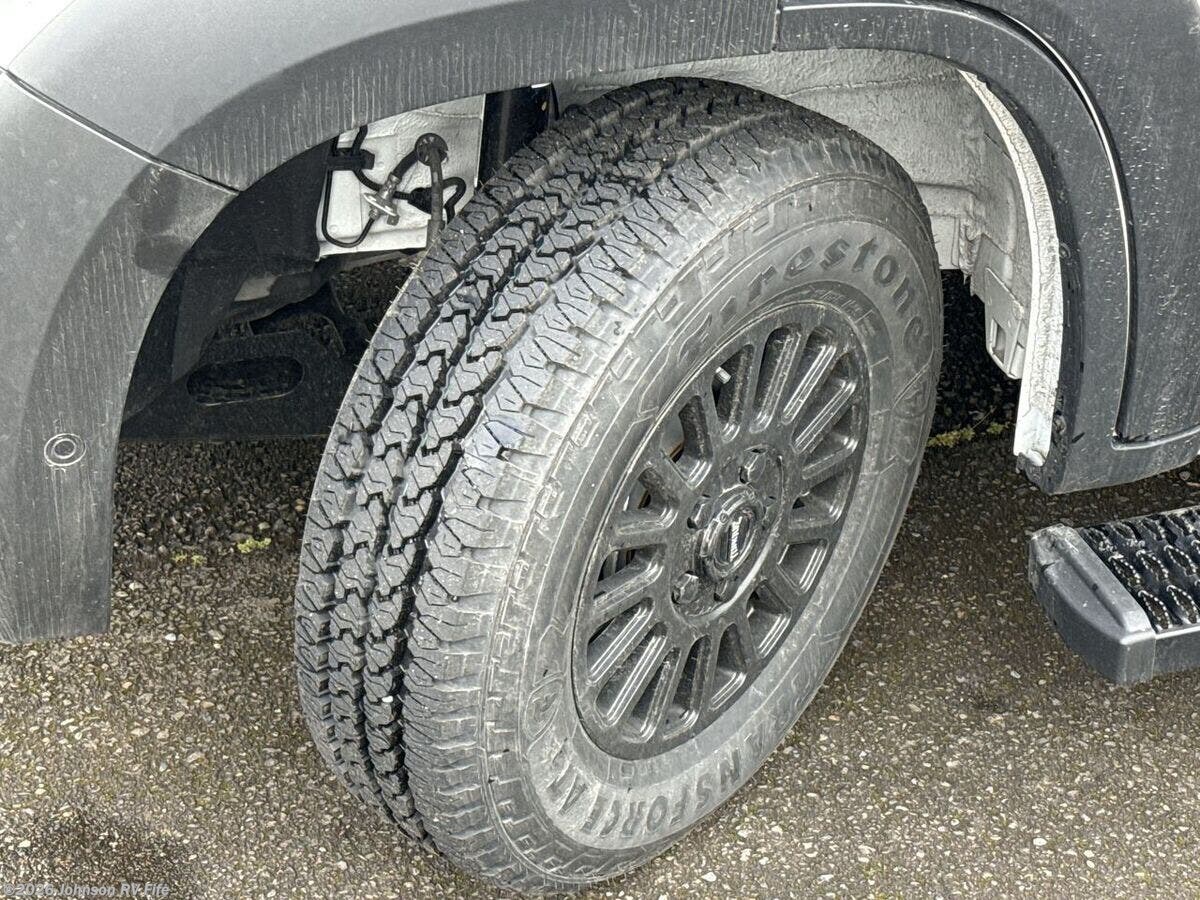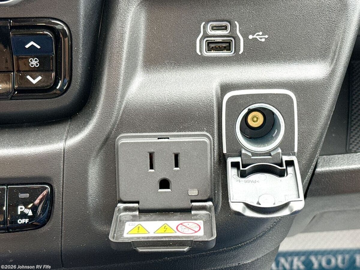Features Include: 280 HP, Induction Cooktop, 24-inch LED Smart TV, Convertible Sofa Bed, Q-Foam Cushions, Wet Bath, Fiberglass Shower, Shower Curtain, Overhead Light, Toilet Mechanical, Auto Generator Start, Truma Combi Eco Plus, Roof Rack and Ladder