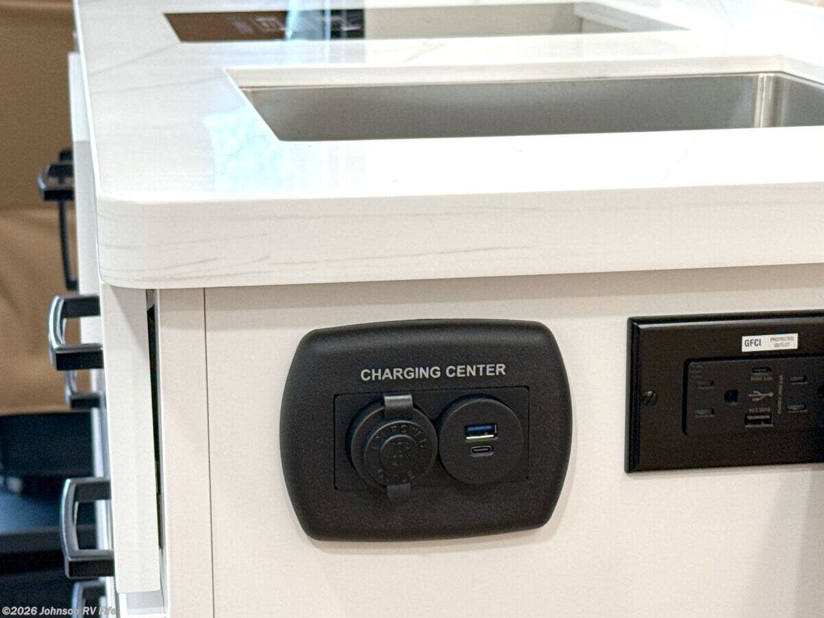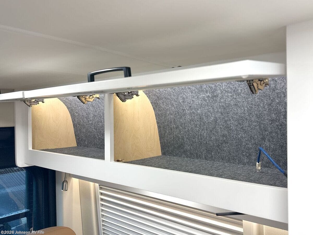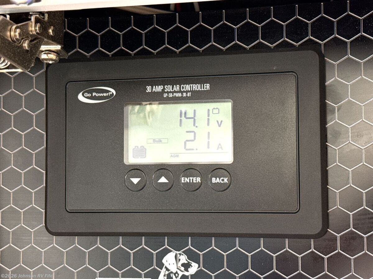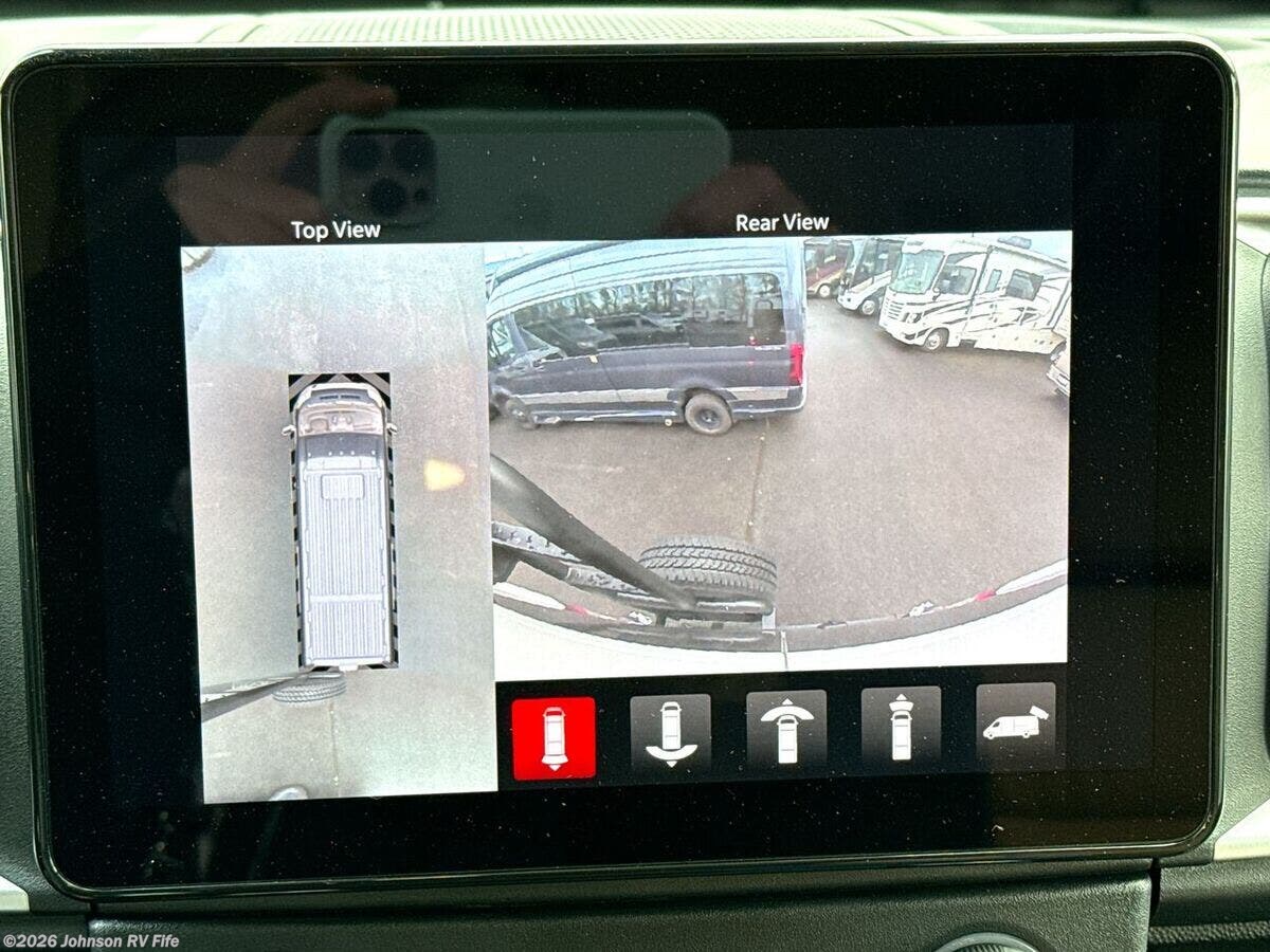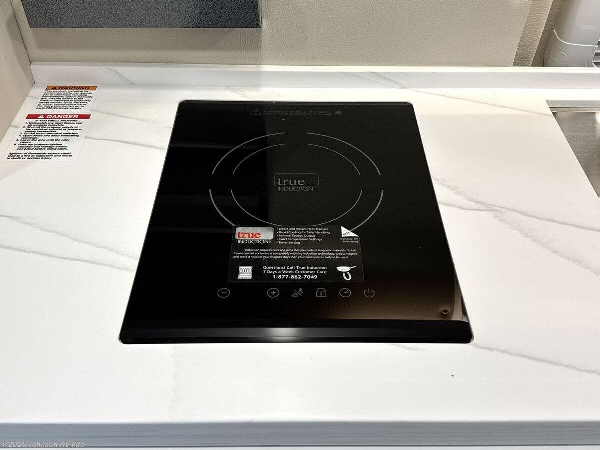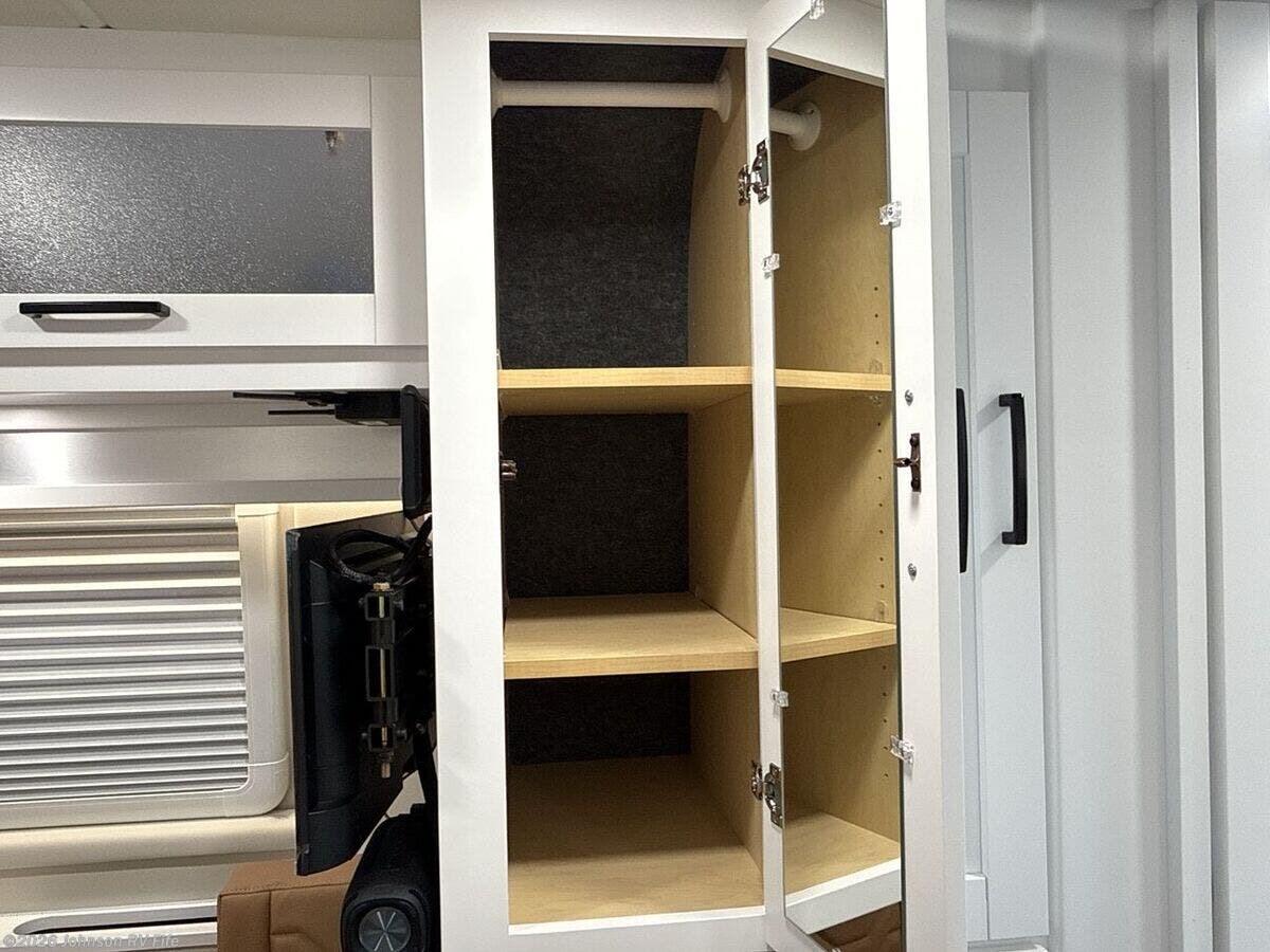 Features Include: 280 HP, Induction Cooktop, 24-inch LED Smart TV, Convertible Sofa Bed, Q-Foam Cushions, Wet Bath, Fiberglass Shower, Shower Curtain, Overhead Light, Toilet Mechanical, Auto Generator Start, Truma Combi Eco Plus, Roof Rack and Ladder