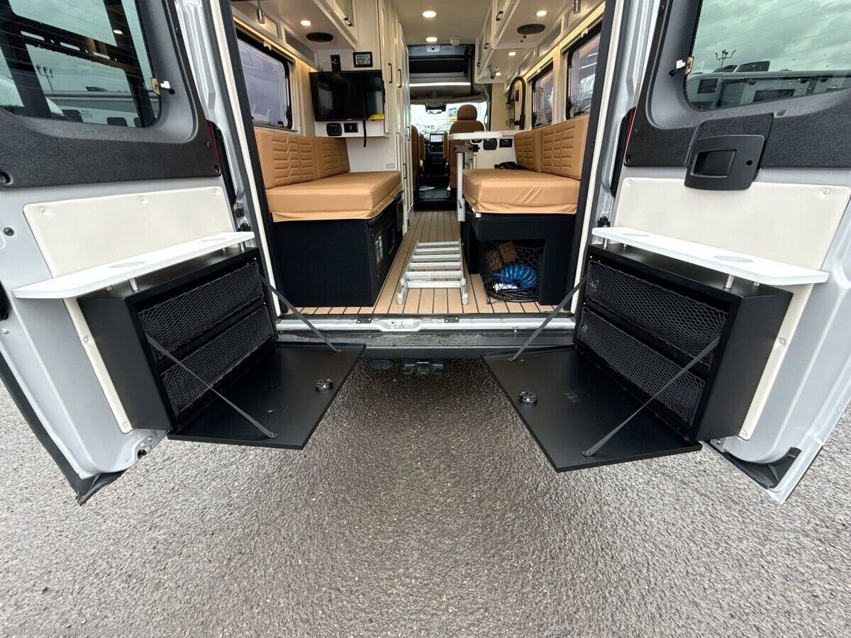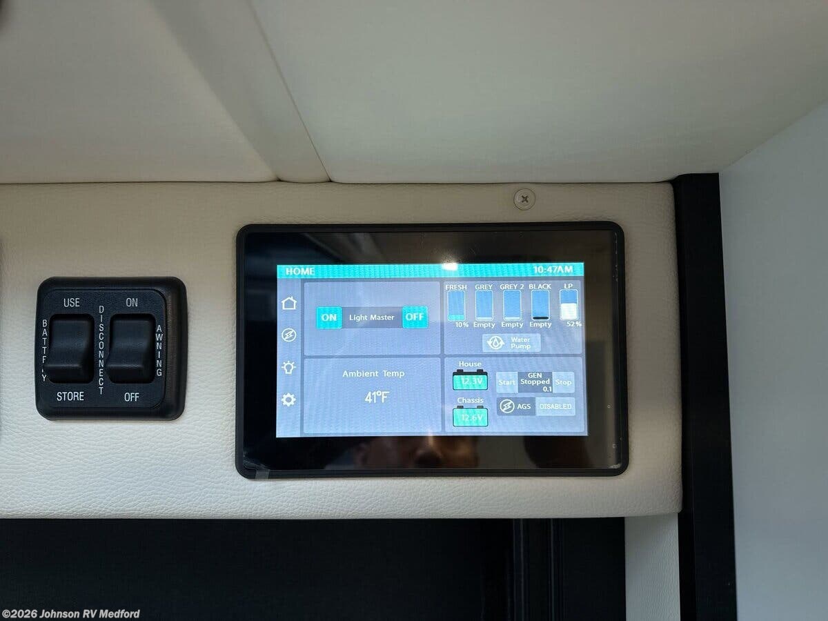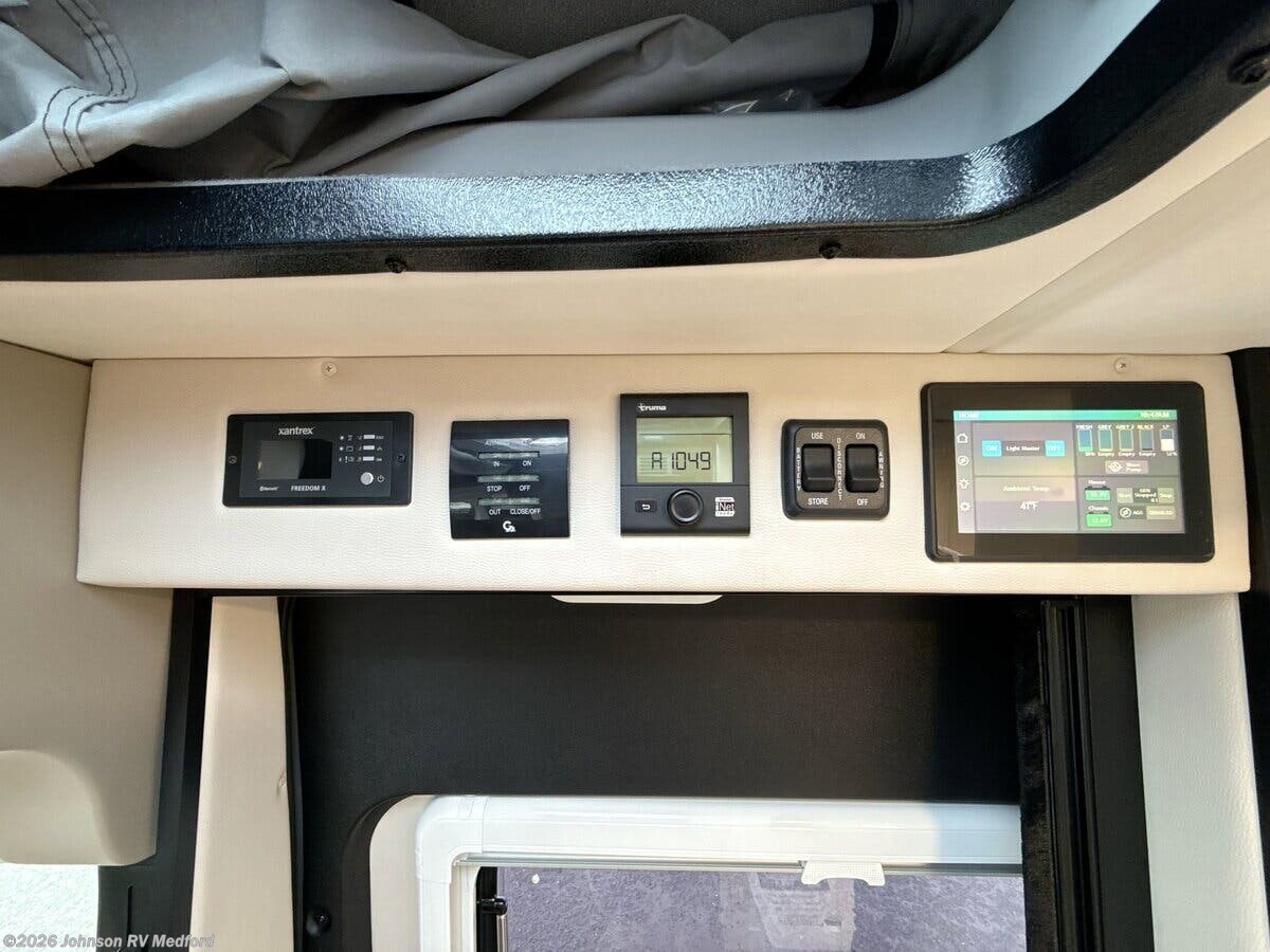 Features Include: 280 HP, Induction Cooktop, 24-inch LED Smart TV, Convertible Sofa Bed, Q-Foam Cushions, Wet Bath, Fiberglass Shower, Shower Curtain, Overhead Light, Toilet Mechanical, Auto Generator Start, Truma Combi Eco Plus, Roof Rack and Ladder