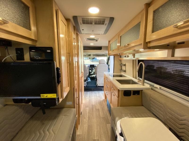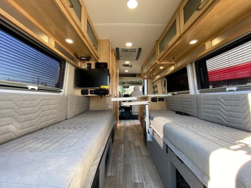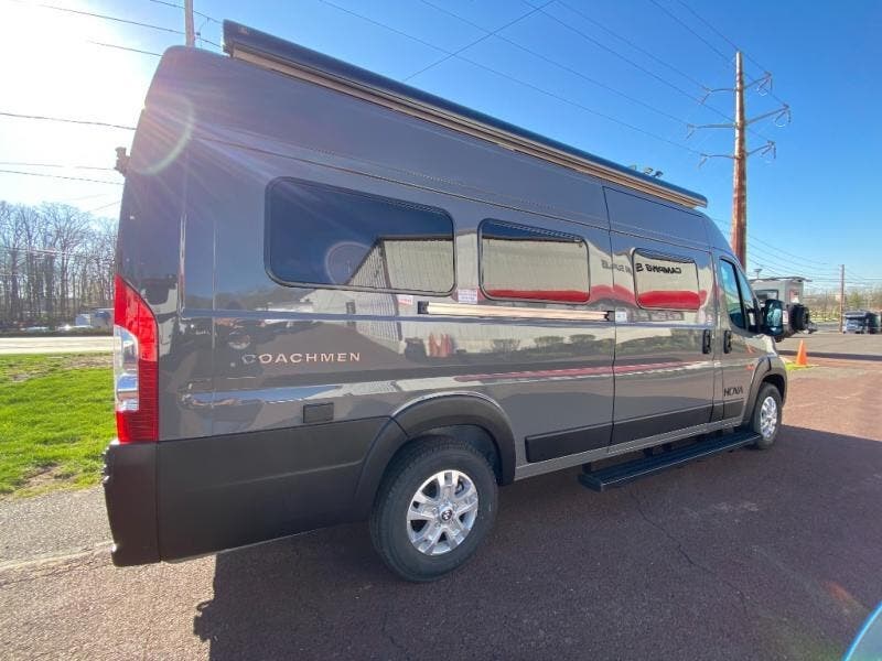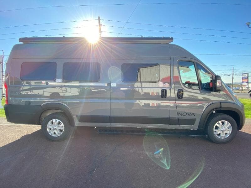 Each Nova Class B gas motorhome by Coachmen features Sumo Spring front and rear suspension for a smooth ride. Each unit is built on a Ram ProMaster 3500 chassis, and is powered by a 3.6L V6, 24 valve engine with 280 HP. You will appreciate the innovative Firefly multiplex system, the Sure Level tank sensors, and the 3 Group 31, 115AH AGM batteries for added power, as well as a new 24" LED Smart TV to help keep you entertained on long trips. Inside, you'll find solid hardwood cabinetry, a fiberglass shower verses the competitors ABS shower, a remote control MaxxAir fan with a rain sensor, and many more comforts to make you feel right at home. There is also a Truma Aventa 13,500 BTU A/C with three speeds, a dehumidifier, and night mode to ensure your comfort throughout each trip! An optional Li Lithium Battery System can be added which features a 640 amp-hour lithium battery, a Bluetooth battery management system, a Xantrex XC Pro 3,000W inverter/charger, and more features for off-grid capability!