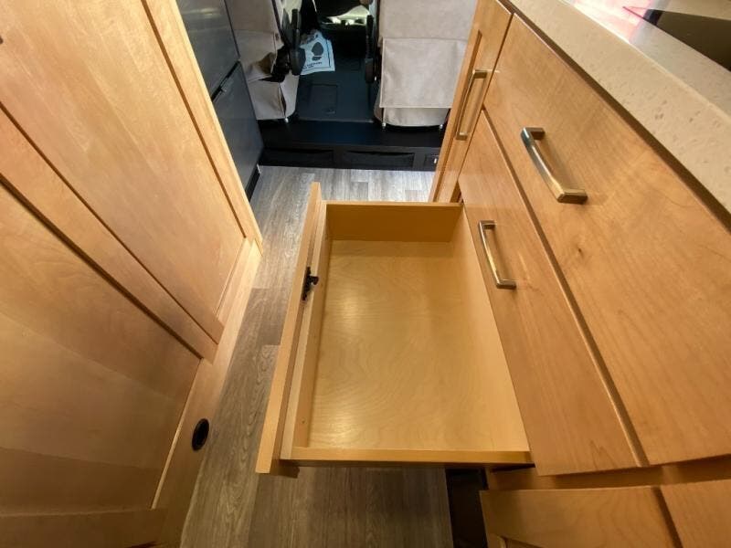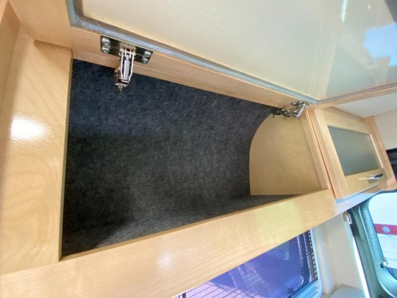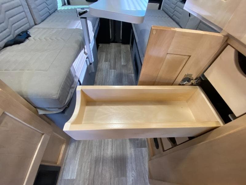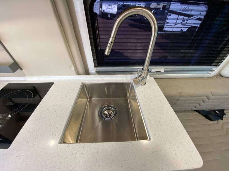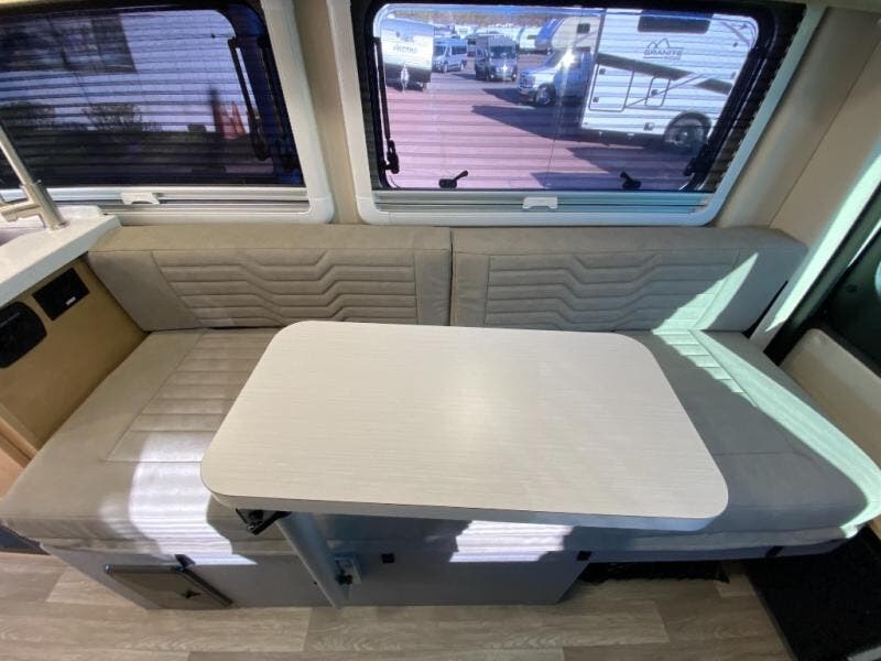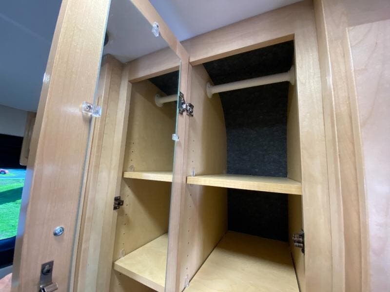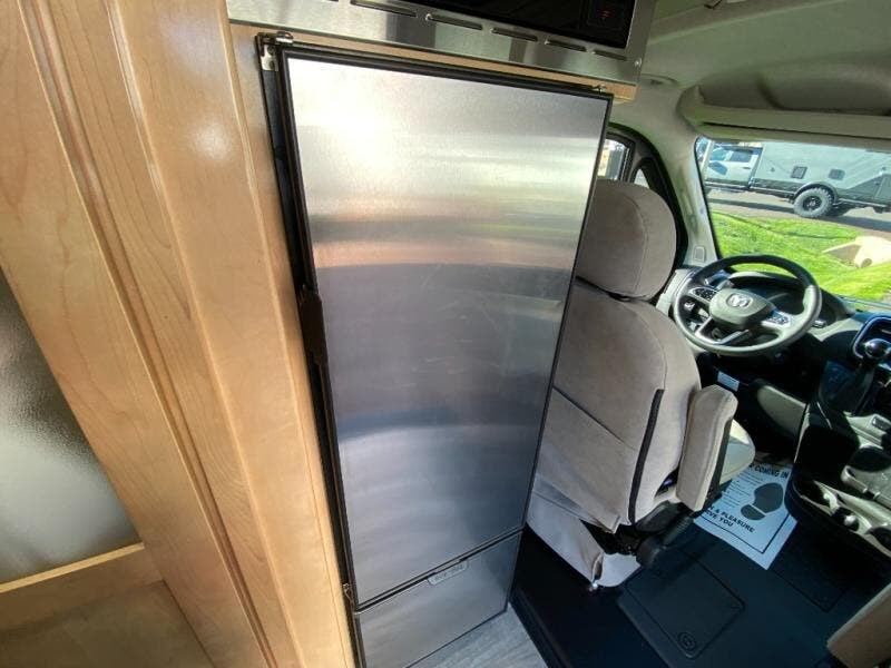 Hit the road and enjoy each journey in this Nova Class B coach. Once you park for the day, you can swivel the captain's seats around and utilize the swivel table. Lunch can be made on the induction cooktop, and the cold ingredients can go back in the 7.3 cu. ft. refrigerator. The convenient wet bath allows you to freshen up after a day exploring, and when you're ready to turn in for the night you can choose from either two 75" x 26" beds, or combine them to create a 75" x 73" bed instead. You will find ample storage in overhead cabinets along each side, beneath the bed, plus there is an extra wardrobe on the roadside as well.