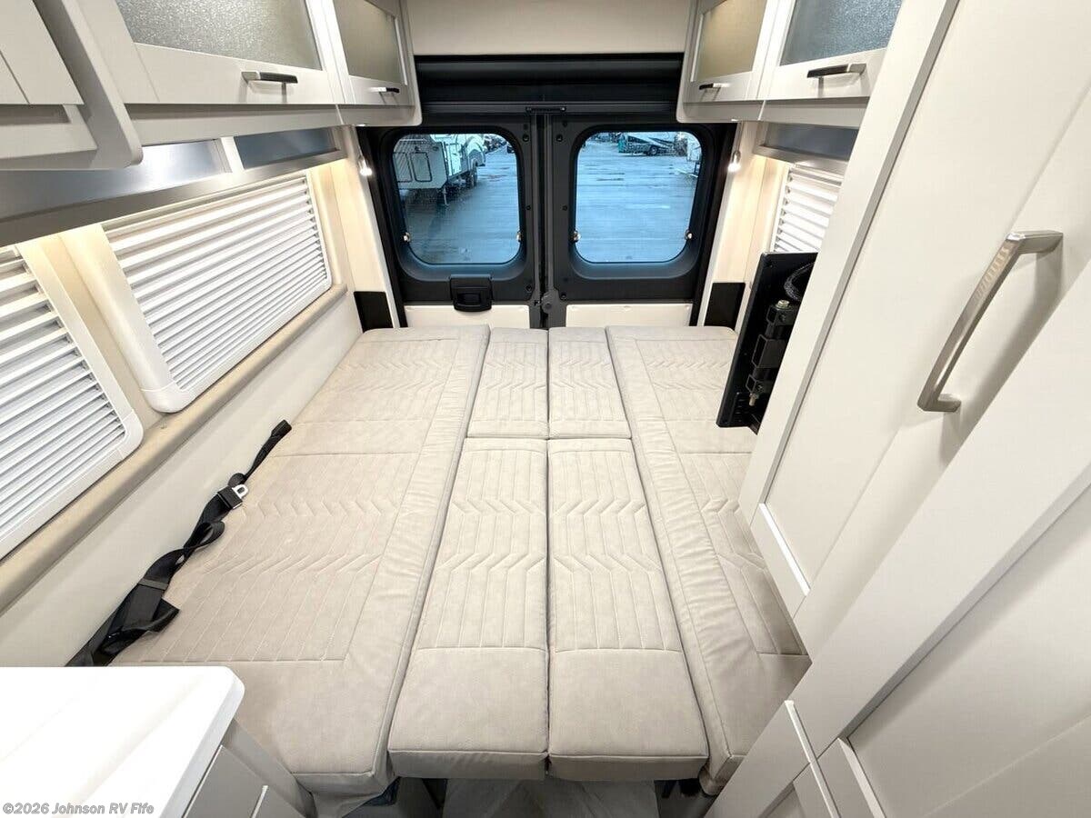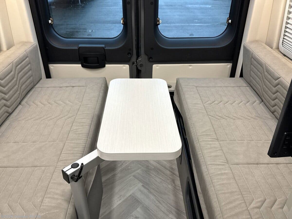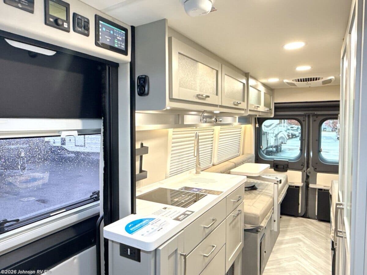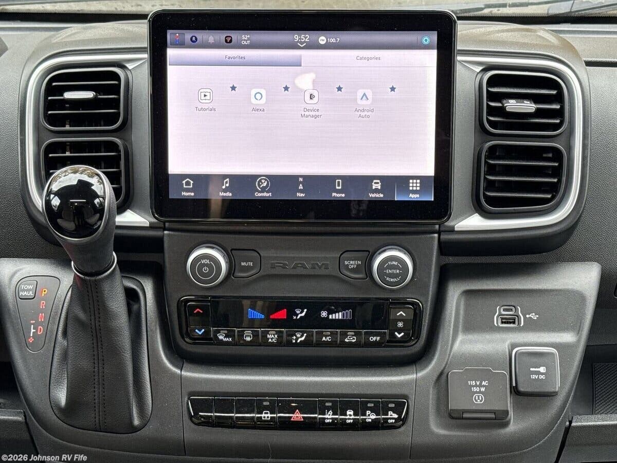 The 2026 Coachmen Nova Ram ProMaster 3500 is a state-of-the-art Class B recreational vehicle designed for those who crave adventure without sacrificing comfort. Built on the robust RAM ProMaster 3500 chassis, this RV is powered by a 3.6L V6 24 Valve Gas Engine, delivering an impressive 280 horsepower. The vehicle is equipped with Sumo Spring Front and Rear Suspension, ensuring a smooth and stable ride, while the 24-gallon fuel tank provides ample range for long journeys. Step inside the Coachmen Nova, and you'll be greeted by a thoughtfully designed living space. The interior features marine-grade PVC vinyl flooring, which is both durable and easy to clean. European dual pane acrylic windows enhance insulation and provide excellent soundproofing. For added privacy and temperature control, solar reflective exterior pull-downs are included. The living area is versatile, with front and rear swivel tables, a sofa, and a jumpseat with Q-Foam cushions for ultimate comfort. Solid hardwood cabinets offer ample storage, and the MaxxAir Fan with a rain sensor and remote ensures optimal ventilation. The dining area is equipped with modern amenities to make meal preparation a breeze. It includes a stainless steel undermount sink with a high-rise pullout sprayer faucet, a Nova Kool refrigerator, an induction cooktop, and an air fryer convection microwave (not available in the 20RB model). These features make it easy to prepare and enjoy meals on the road. For entertainment and connectivity, the Coachmen Nova is outfitted with Firefly Multiplex Controls, Sure Level Tank Sensors, and a King Olympus Digital Antenna. It is also prepped for a WiFi router and cell booster, ensuring you stay connected wherever you go. A 24-inch LED Smart TV mounted on a swing arm bracket provides entertainment options for those cozy nights in. Sleeping arrangements are designed for flexibility and comfort. The convertible sofa bed with Q-Foam cushions offers a restful night's sleep, while overhead cabinets provide additional storage space for personal items. The bathroom is a well-appointed wet bath, featuring a fiberglass shower with a shower curtain, an overhead light, a sink with a pullout spray faucet, and a toilet. The Shower Miser Water Saver (not available in the 20RB model) helps conserve water during your travels. Mechanically, the Coachmen Nova is equipped with advanced features to support off-grid adventures. It includes 220 watts of solar power from two 110-watt solar panels, three 115Ah AGM batteries (totaling 345Ah), and a 2000w Xantrex inverter. The auto generator start feature ensures you have power when you need it. The RV also boasts fresh and black tanks above the floor, a Truma Combi Eco Plus heating system, and a Truma Aventa 13.5k AC with dehumidifier and night modes for climate control. The coach build is designed for durability and functionality, featuring R-15 Rockwool insulation for superior thermal performance. A roof rack and ladder provide additional storage and accessibility options, making the Coachmen Nova Ram ProMaster 3500 a perfect companion for your next adventure. ??