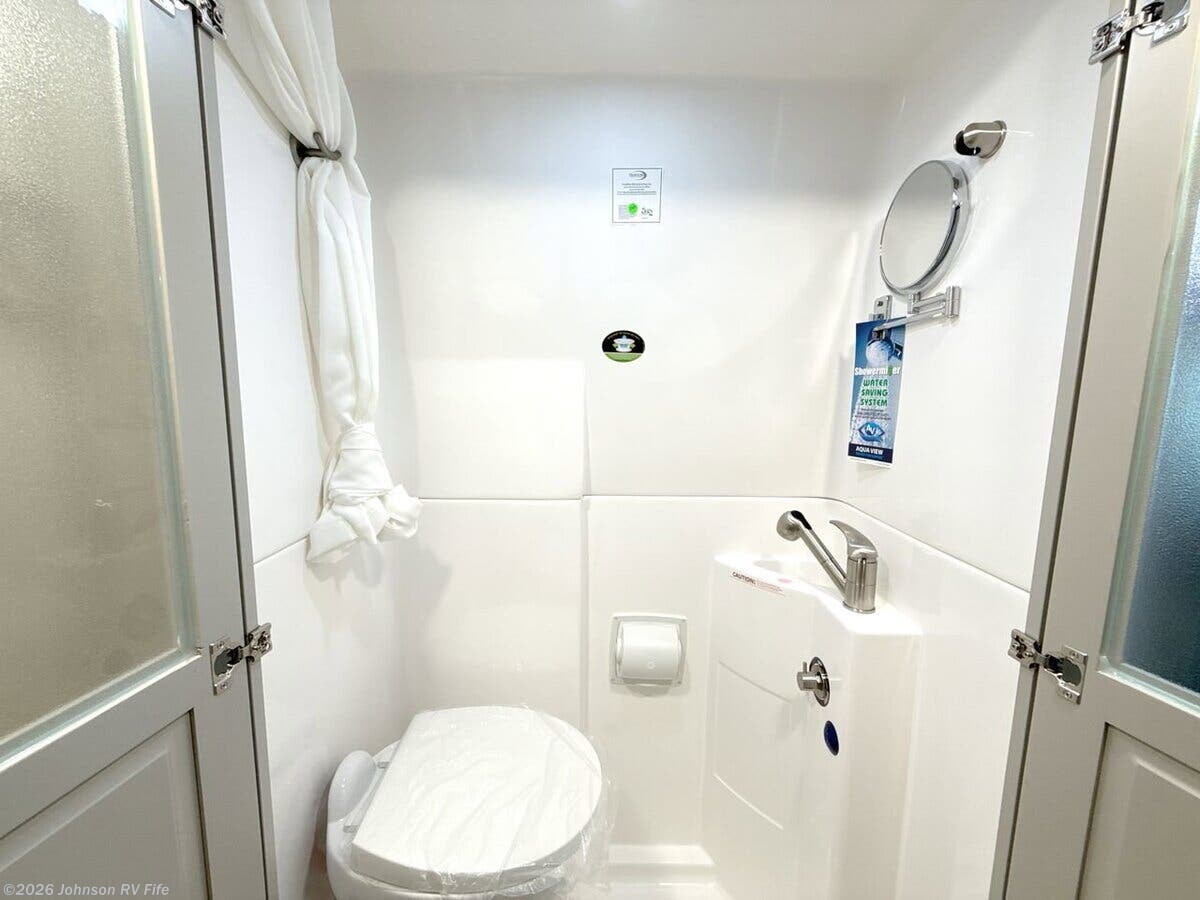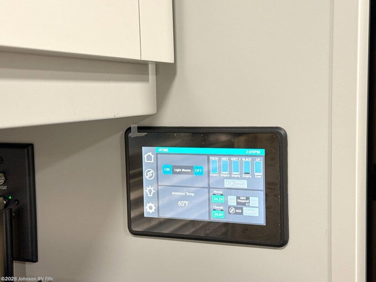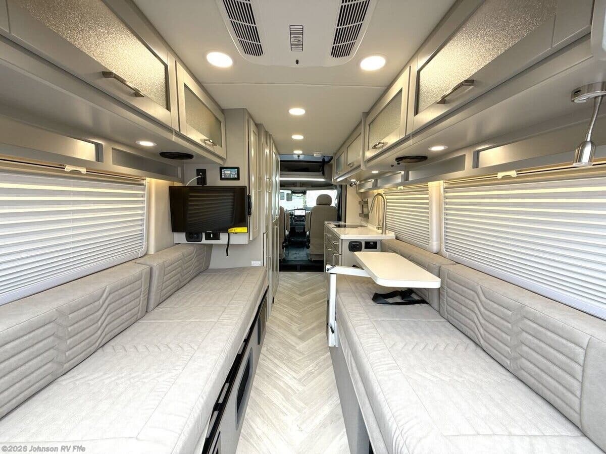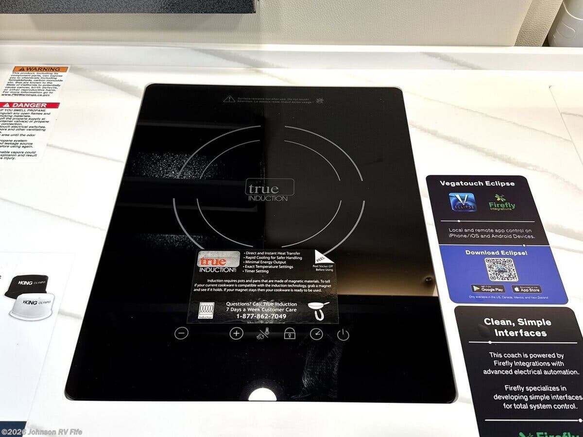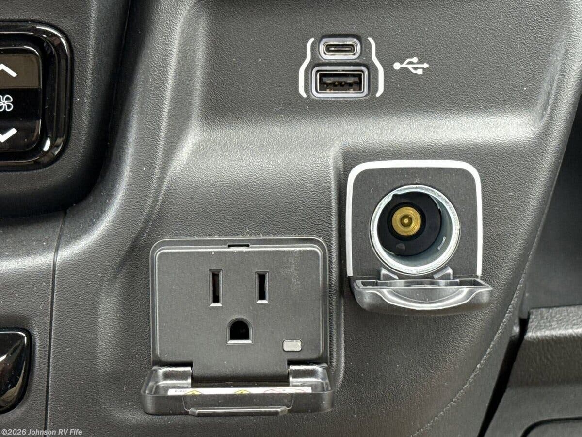 Features Include: 280 HP, Induction Cooktop, 24-inch LED Smart TV, Convertible Sofa Bed, Q-Foam Cushions, Wet Bath, Fiberglass Shower, Shower Curtain, Overhead Light, Toilet Mechanical, Auto Generator Start, Truma Combi Eco Plus, Roof Rack and Ladder