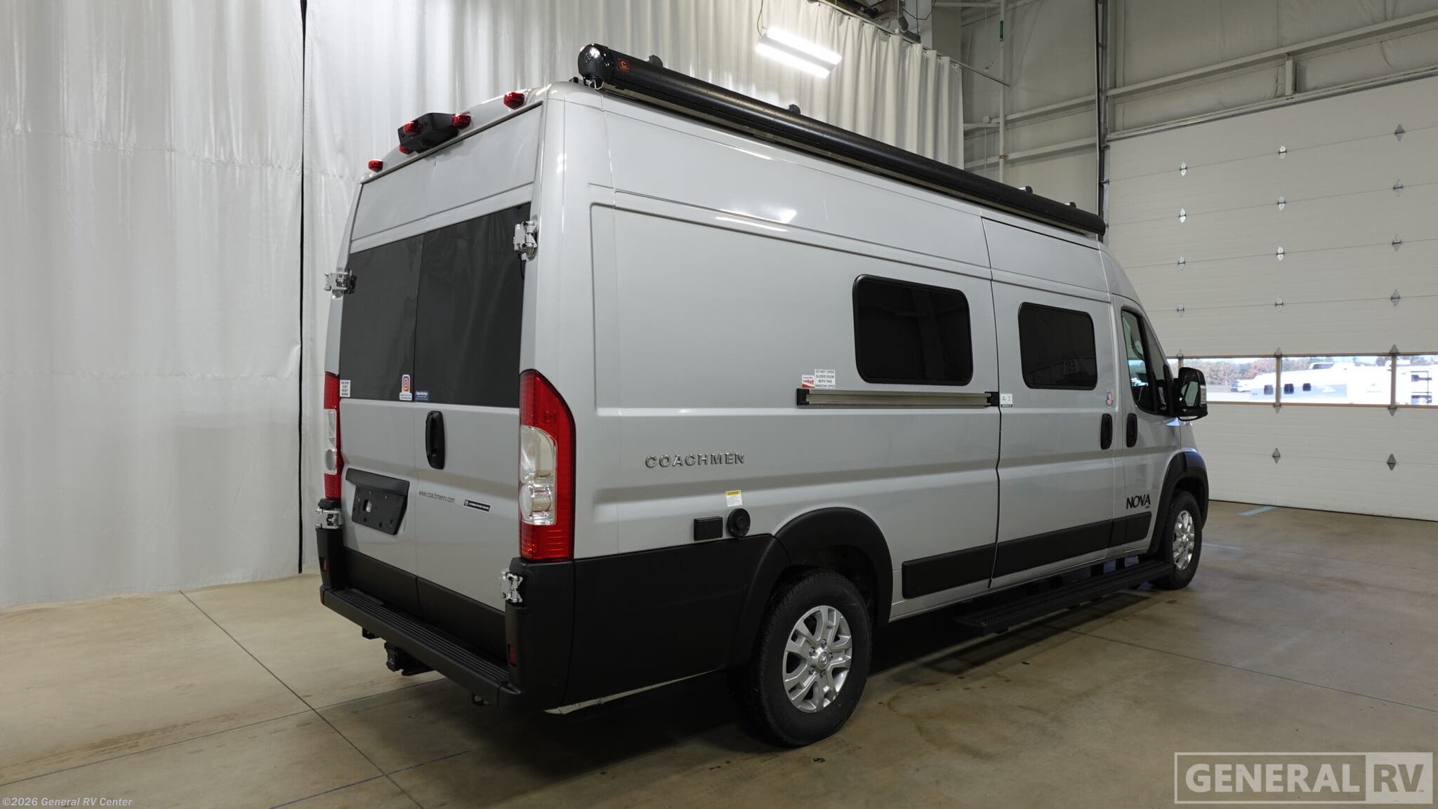Experience the open road like never before with the 2026 Coachmen Nova 20RB. This sleek and compact RV is designed for adventurous couples seeking both comfort and functionality. At just under 21 feet, it offers a versatile living space with a front kitchen and center living area, making it perfect for both quick weekend getaways and extended road trips. The convertible twin beds easily transform into a cozy sleeping area, ensuring restful nights under the stars. With its efficient use of space, the Nova 20RB provides all the essentials without compromise. The rear bath features a convenient wet bath setup, complete with a shower curtain, ensuring a refreshing start to your day. The galley is equipped with a two-burner cooktop and a compact electric refrigerator, ideal for preparing delicious meals on the go. The 13.1-foot powered retractable awning extends your living space outdoors, perfect for enjoying the scenery from the comfort of your campsite. Built on the reliable ProMaster 3500 chassis with a powerful Pentastar VVT V6 engine, this RV offers a smooth and confident drive. For more details and to explore this model further, visit your nearest General RV dealership.