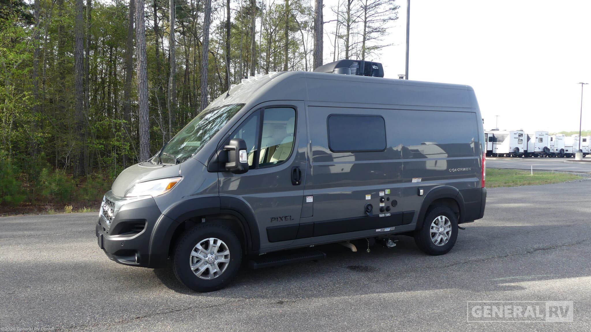 **2026 Coachmen Pixel 1.8RB Highlights:** - Compact Class B Design - Truma Aventa Roof A/C (13,500 BTU) - Air Fryer / Convection Microwave - 7.3 cu ft Refrigerator - One-Piece Fiberglass Shower The 2026 Coachmen Pixel 1.8RB is a nimble and efficient Class B motorhome built on the Ram ProMaster chassis with a 3.6 L Pentastar™ V6 gas engine — delivering confident power and easy handling in a compact package. Designed for couples or solo adventurers, this thoughtfully laid-out coach offers comfortable sleeping for two, a well-equipped wet bath with one-piece fiberglass shower, and a functional galley kitchen with a 7.3 cu ft refrigerator, induction cooktop, and air fryer/convection microwave. Climate comfort is handled by the Truma Aventa roof-mount air conditioner and integrated Truma furnace/hot water system, keeping the interior pleasant in changing weather. Smart storage, a quiet generator, and a solid electrical system with 30-amp service round out the Pixel’s feature set, making it ideal for weekend escapes or extended road trips where compact size and big usability matter.