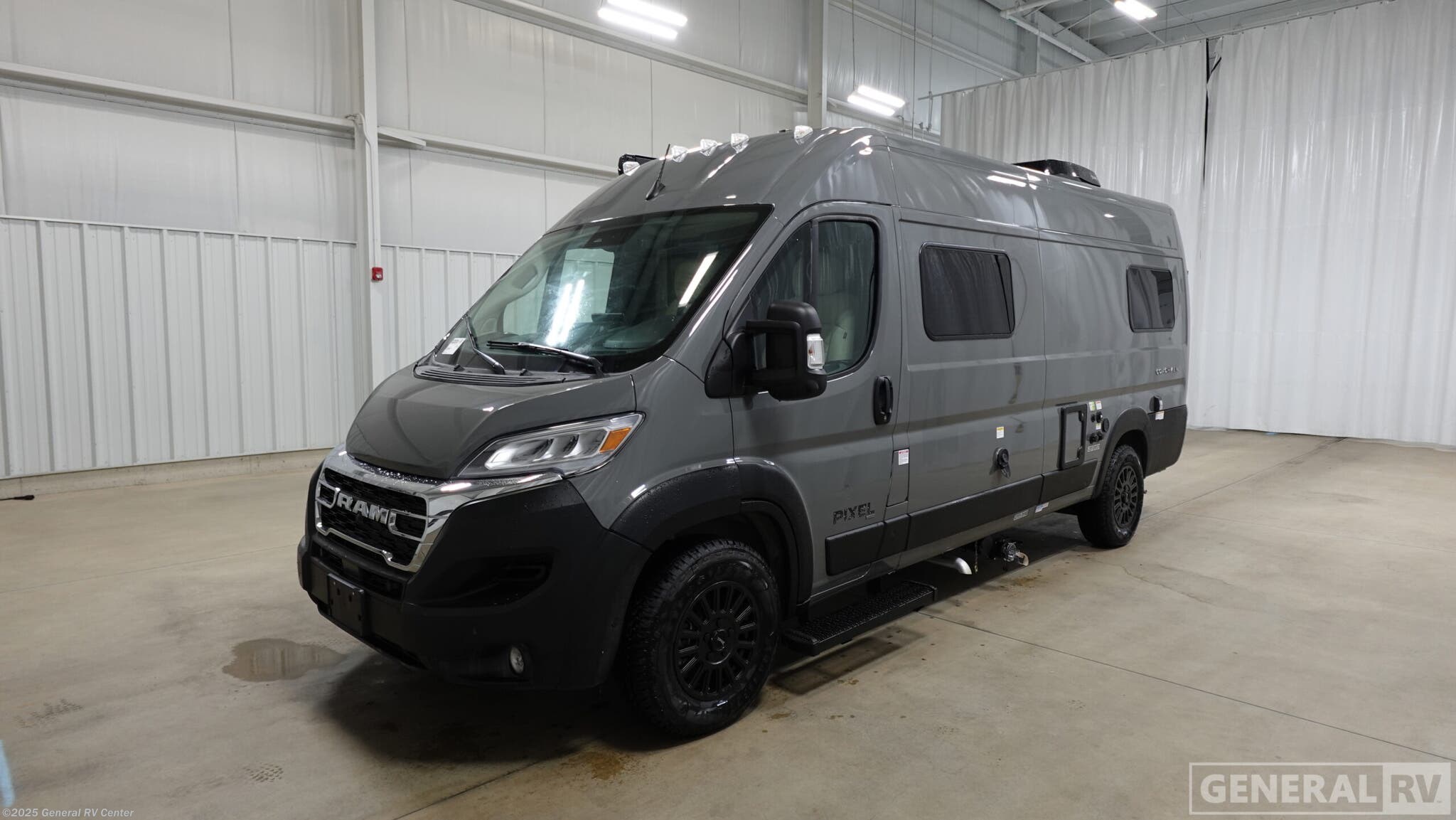 Experience the road like never before with the 2025 Coachmen Pixel P 2.0M. This compact yet versatile RV is designed for those who crave adventure without sacrificing comfort. Its sleek 20.92-foot frame houses a cleverly designed interior that maximizes space and functionality. The front living area welcomes you with swivel captain chairs, perfect for relaxing after a long day of exploring. The center kitchen, equipped with a mid-size electric refrigerator and a loose-loaded induction cooktop, ensures you can whip up delightful meals on the go. The Pixel P 2.0M is all about smart living. The convertible Murphy bed transforms the space, offering a cozy sleeping area for two. The center bath features a convenient swivel cassette toilet and a shower with a curtain, making it easy to freshen up. With a 13.1 ft. powered retractable awning, you can enjoy the outdoors in comfort, whether you're parked in a scenic campsite or tailgating with friends. Built on a robust ProMaster 3500 chassis with a Pentastar VVT V6 engine, this RV delivers both power and reliability, ensuring you reach your destination with ease. For more details, visit your nearest General RV dealership.