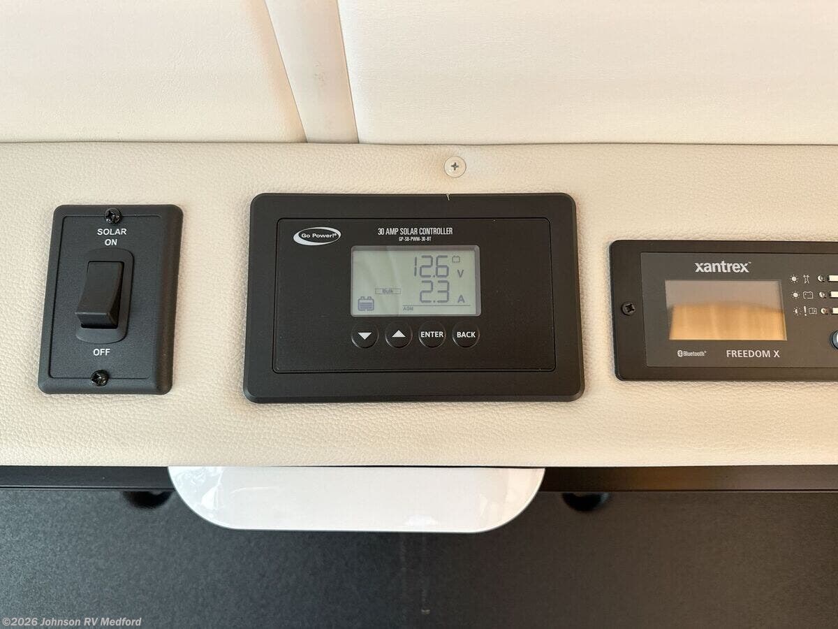 Features Include: 30 Amp Smart Plug, WiFi Router, Cell Booster Prep, 1, Cassette Toilet, Large Square Sink, Heated Shower, Side Screen Door, Silver, Ceramic Grey, and Thule Awning, Xantrex XC Pro 3