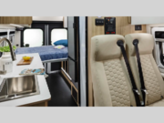 Start a new adventure across the states in this cozy coach! Once you arrive at the campground, you can make lunch on the induction cooktop or in the air fryer/convection microwave. There is also a 7.3 cu. ft. refrigerator with a pull-out freezer drawer to keep your food fresh. You'll find multiple overhead cabinets to keep your belongings tucked out of the way, and the compact wet bath will let you freshen up after a day outdoors. Up front, you'll find two captains seats plus two additional cab seats with a removable table and storage boxes. The 56" x 77" Murphy bed provides versatile sleeping space when you're ready to get some shut-eye. If you're needing additional sleeping space, you can choose the optional pop-top. When the optional pop-top is chosen, the standard Truma A/C is changed out for a Coleman Mach 10 A/C; see dealer for more details.