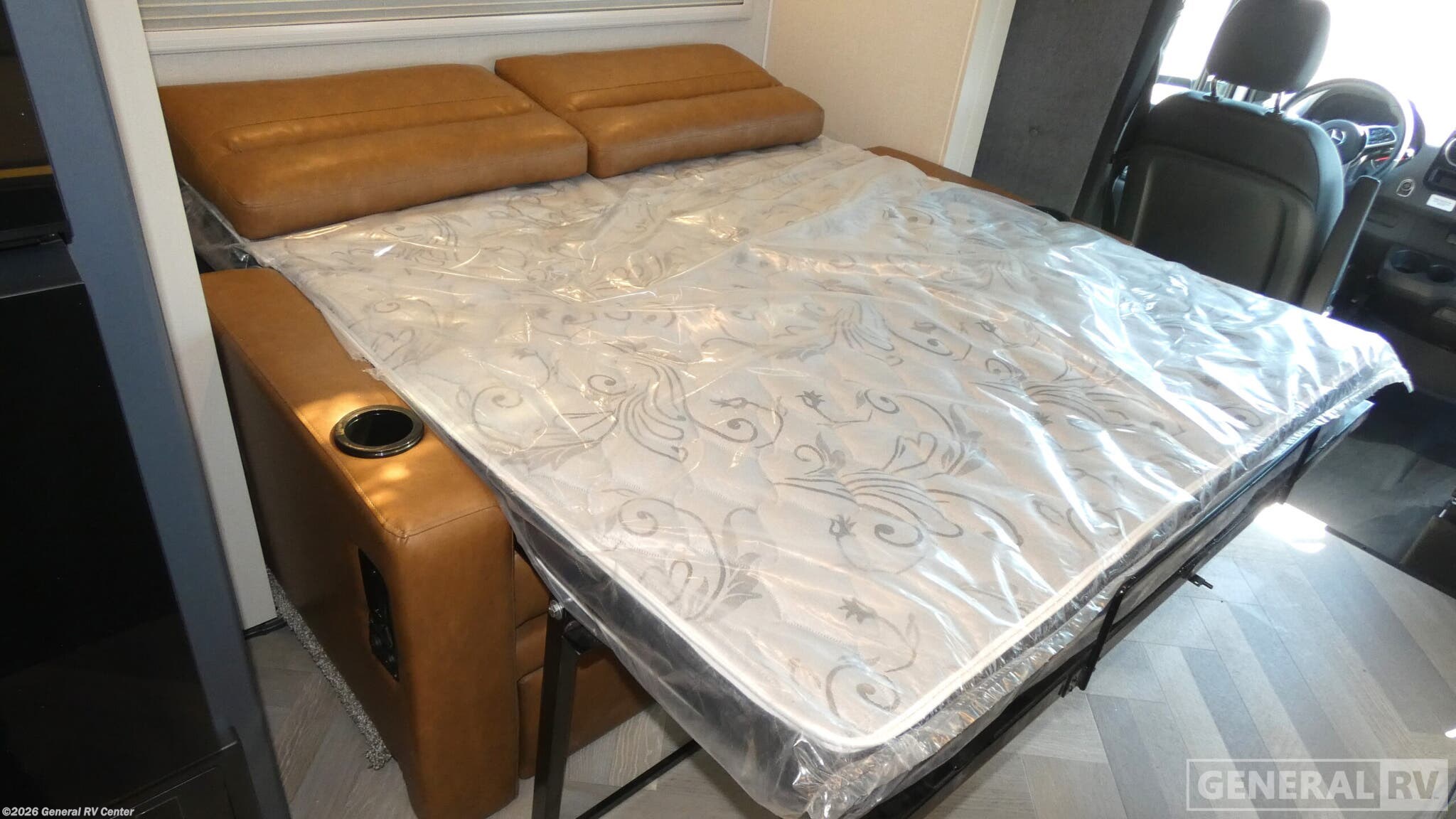 Coachmen Prism Elite Class C diesel motorhome 24MBE highlights: 45" x 76" Bunk Over Cab Murphy Bed Slide Rear Bathroom Fireplace You will enjoy the versatility that this Murphy bed model provides. Depending on whether it is daytime or evening will determine if you have a 60" x 74" Murphy bed that slides out or a 62" sofa to enjoy. There is a 45" x 76" bunk over cab that can be used for added sleeping for two more guests, or to be used as added storage space. The rear full bath is spacious and private and includes a 35" x 35" angled shower, toilet, vanity with sink, plus linen cabinet, and wardrobe. The kitchen features everything needed to create meals while on the go, and a cozy fireplace is included beneath the coach TV for your enjoyment. With any of the Prism Elite Class C diesel motorhomes, the Coachmen legacy of upscale luxury with Mercedes-Benz drivability is found throughout. With the aerodynamic and stylish rear fiberglass cap and integrated fiberglass running boards, plus full body paint choices, you are sure to turn heads as you travel to your destination. There are also upgraded MorRyde cargo doors outside, along with an armless awning to enjoy some shade. The interior provides solid surface countertops with lit edge banding, a soft touch ceiling, LED batton strip lights, and Curio glass in the overhead kitchen cabinets. A Truma Aqua Go on-demand water heater will provide endless hot showers, and the 15K BTU low profile A/C will keep you cool all summer long. Choose a reliable and luxurious Prism Elite today!
