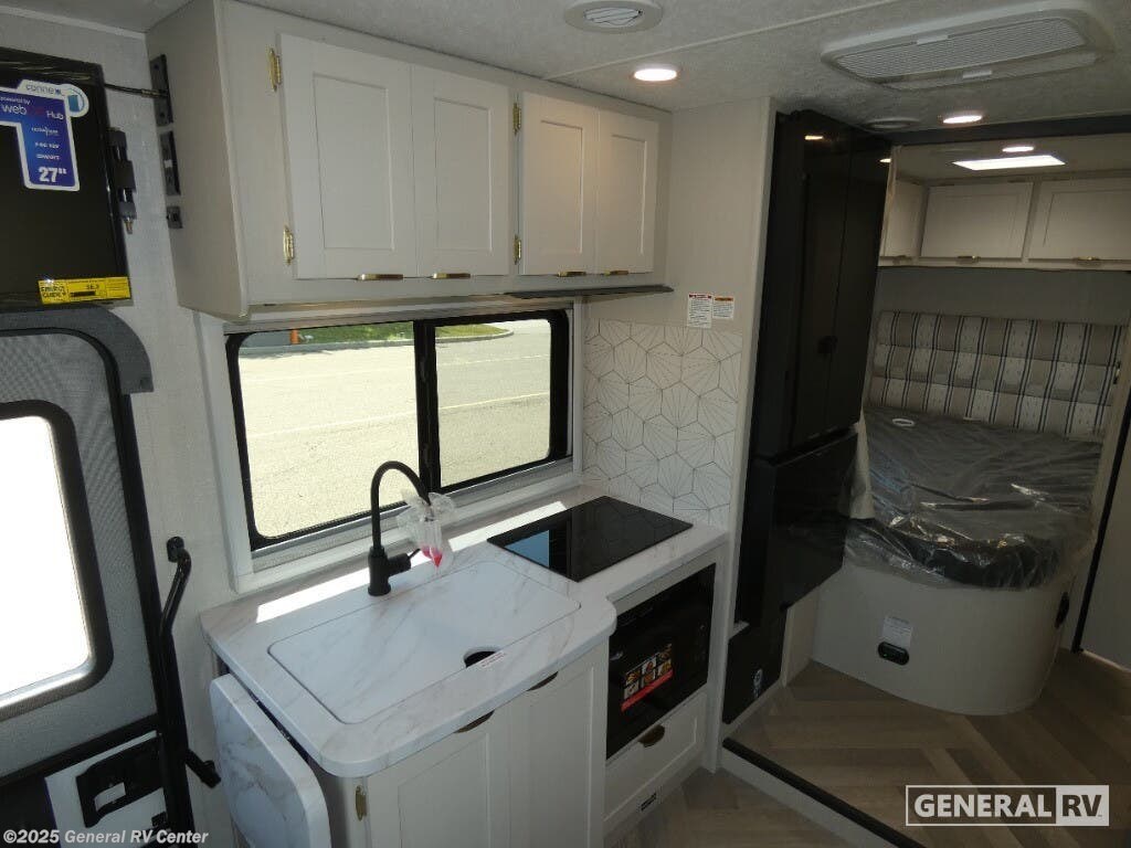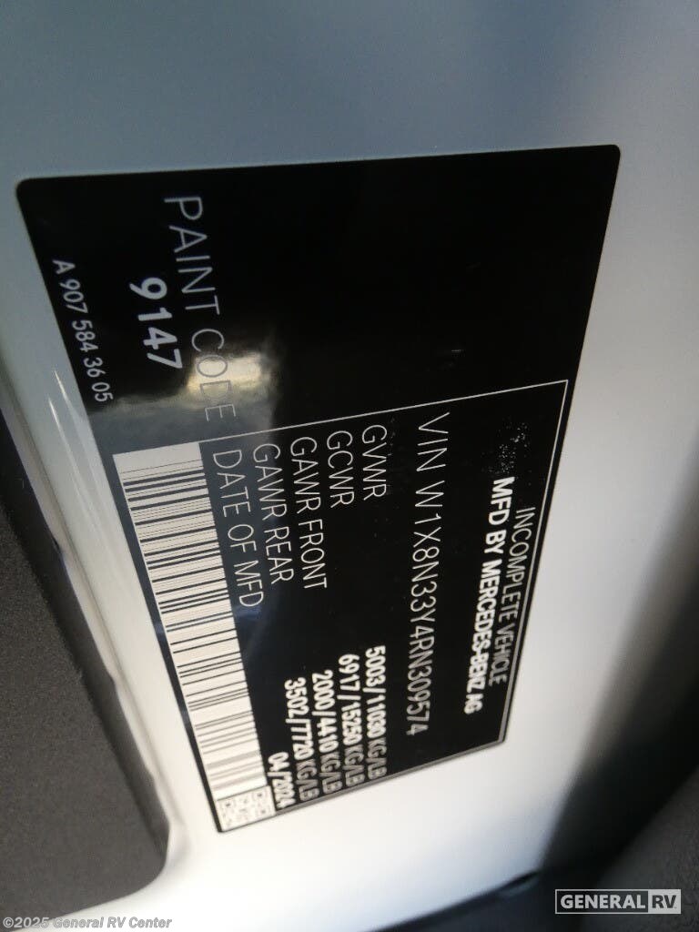 Experience the perfect blend of comfort and functionality with the 2026 Coachmen Prism Select 24CB. This RV is built on the reliable Mercedes-Benz Sprinter 3500 chassis, offering a smooth ride with its powerful I4 engine. Measuring 25 feet in length, this compact yet spacious motorhome is designed to accommodate up to five people, making it ideal for family adventures or a getaway with friends. The full-size bed and convertible sleeping spaces ensure everyone has a cozy spot to rest after a day of exploration. Inside, you'll find a well-appointed center kitchen featuring a mid-size electric refrigerator and a two-burner cooktop, perfect for preparing delicious meals on the road. The front living area invites relaxation with an optional recliner setup, while the rear bath provides privacy and convenience with a curtain shower. For outdoor enjoyment, the 14 ft. powered retractable awning creates a shaded oasis, perfect for lounging or dining al fresco. With a diesel fuel capacity of 26 gallons and a towing capacity of 7,500 pounds, your adventures have endless possibilities. Discover more about this versatile RV at your nearest General RV Dealership.