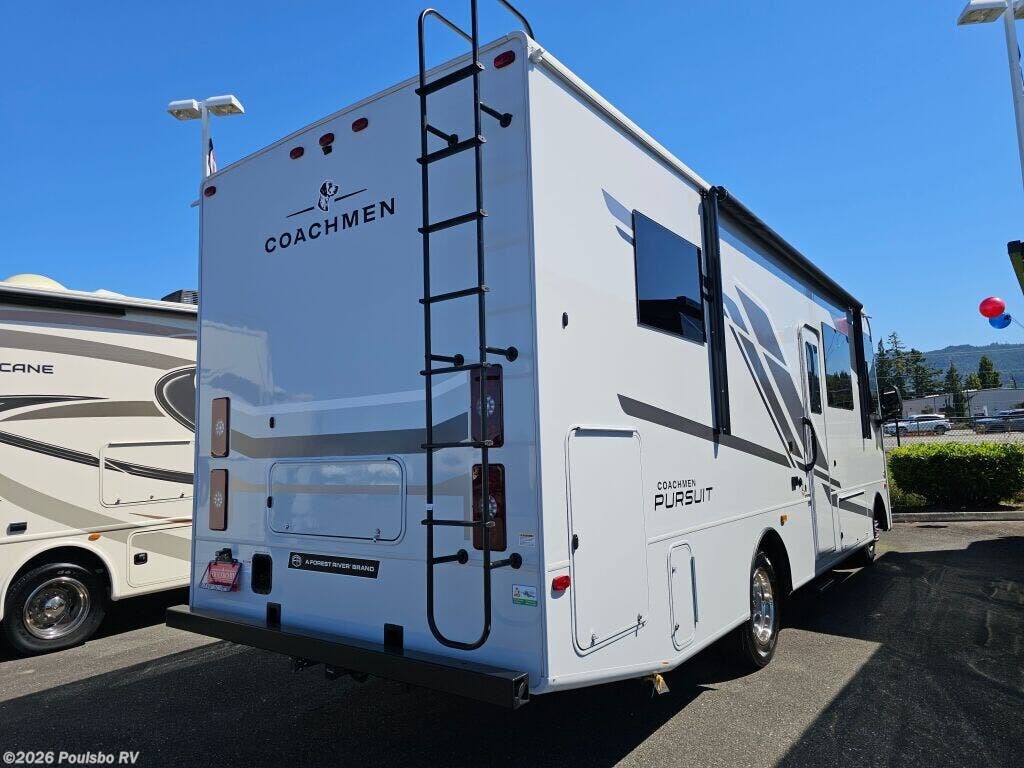 Introducing the 2026 Coachmen Pursuit 27XPS, a marvel in the world of recreational vehicles that is crafted for unforgettable adventures on the open road. This brand-new model is an impressive 28.87 feet in length, making it perfect for both weekend escapes and extended journeys with family or friends. Designed to comfortably accommodate up to eight people, it provides exceptional living space that encourages relaxation and social interaction during your travels. As you step inside, you will be welcomed by a thoughtfully arranged interior that emphasizes comfort and practicality, enhancing your RVing experience to true family-friendly adventures. The rear power leveling jacks facilitate easy setup, ensuring stability and comfort no matter where you park. Although this model does not include slide-outs, it uses its innovative design to maximize living space, creating a cozy yet spacious atmosphere. The strategic interior layout features plentiful sleeping accommodations, making it an ideal choice for larger groups seeking to explore together. With its fuel-efficient gas type, the 2026 Coachmen Pursuit allows for long-lasting trips with fewer fuel stops, making away-from-home living convenient and enjoyable. Whether you are planning to visit enchanting national parks or favorite camping spots across the country, this motorhome is specially equipped for your adventures. As a family-owned, award-winning local RV dealer with multiple locations in Sumner, Everett, Kent, and Mt. Vernon Washington, Poulsbo RV is here to assist you in finding the perfect RV. Stock#: M3694, VIN: 1F64F5DN4R0A01638.