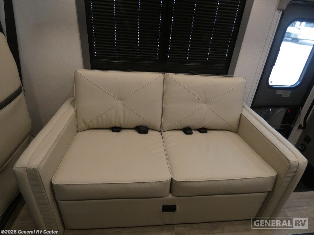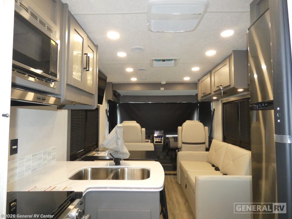 Experience the thrill of the open road with the 2026 Coachmen Pursuit 27XPS, a marvel of modern RV design. This motorhome offers a spacious and inviting layout, perfect for families or groups seeking adventure without sacrificing comfort. With the ability to sleep up to eight people, this RV features a cozy queen bed, convertible sleeping areas, and a convenient drop-down overhead bunk, ensuring everyone has a comfortable place to rest. The Pursuit 27XPS is designed for both functionality and style. The center kitchen is equipped with a full-size electric refrigerator and a three-burner cooktop, making meal preparation a breeze. The front living area, complete with a 63" sofa and a 42" x 70" dinette, is perfect for relaxing or entertaining. A 16 ft. powered retractable awning extends your living space outdoors, providing shade and comfort wherever you park. Built on a robust Ford F53 chassis with a powerful 335-horsepower engine, this RV promises a smooth and reliable ride. With ample storage, a 50-gallon fresh water capacity, and a towing capacity of 8,000 pounds, the Pursuit 27XPS is ready for any journey you have in mind. For more details or to experience this RV in person, visit your nearest General RV dealership.