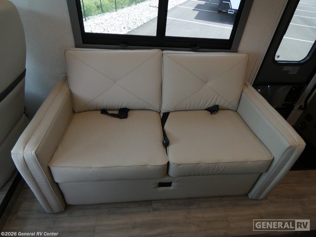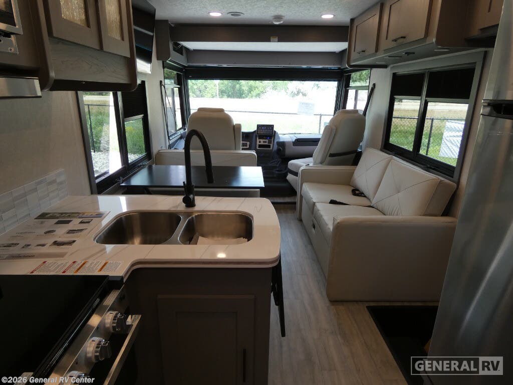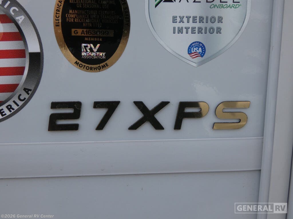 Experience the thrill of the open road with the 2026 Coachmen Pursuit 27XPS, a marvel of modern RV design. This motorhome offers a spacious and inviting layout, perfect for families or groups seeking adventure without sacrificing comfort. With the ability to sleep up to eight people, this RV features a cozy queen bed, convertible sleeping areas, and a convenient drop-down overhead bunk, ensuring everyone has a comfortable place to rest. The Pursuit 27XPS is designed for both functionality and style. The center kitchen is equipped with a full-size electric refrigerator and a three-burner cooktop, making meal preparation a breeze. The front living area, complete with a 63" sofa and a 42" x 70" dinette, is perfect for relaxing or entertaining. A 16 ft. powered retractable awning extends your living space outdoors, providing shade and comfort wherever you park. Built on a robust Ford F53 chassis with a powerful 335-horsepower engine, this RV promises a smooth and reliable ride. With ample storage, a 50-gallon fresh water capacity, and a towing capacity of 8,000 pounds, the Pursuit 27XPS is ready for any journey you have in mind. For more details or to experience this RV in person, visit your nearest General RV dealership.