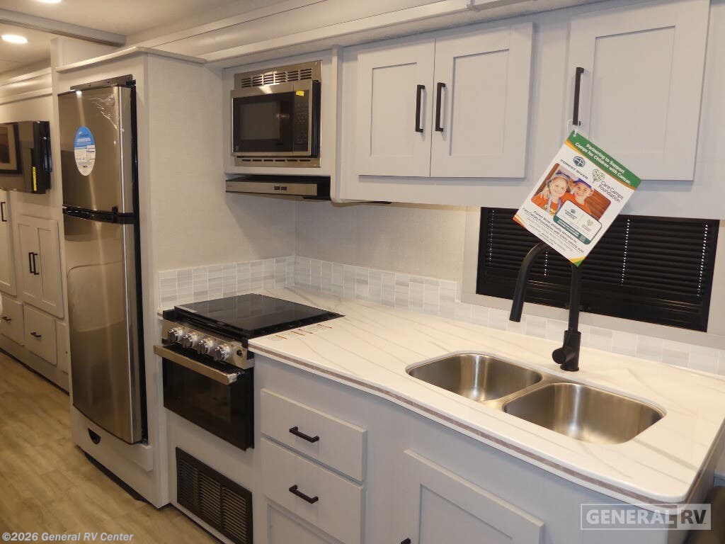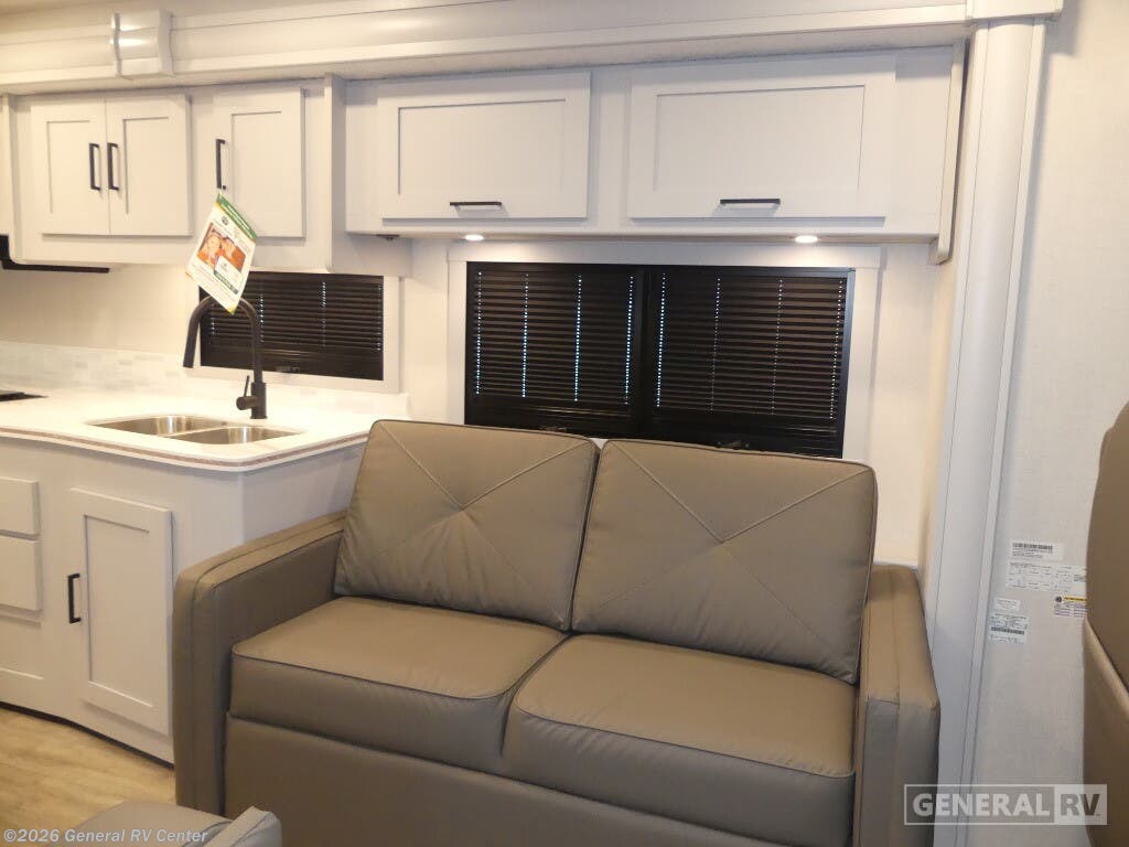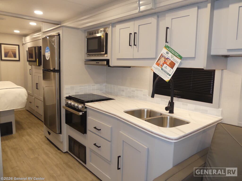 Discover the 2026 Coachmen Pursuit 29SS, where adventure meets comfort in a spacious and thoughtfully designed motorhome. This RV is perfect for families or groups, offering sleeping accommodations for up to eight people with a cozy queen bed, convertible sofas, and a convenient drop-down overhead bunk. The front living area is inviting and functional, featuring a 63" sofa with storage and a dinette that easily converts for additional sleeping space. The full-size electric refrigerator and three-burner cooktop in the center kitchen make meal preparation a breeze, while the ample storage ensures all your essentials are within reach. The rear bedroom is a tranquil retreat with a 60" x 74" queen bed and abundant wardrobe space, perfect for unwinding after a day of exploration. Enjoy the convenience of a center bath with a 38" x 24" shower, offering a touch of home on the road. Outside, the 20 ft. powered retractable awning provides a shaded oasis, complemented by an exterior kitchen and LED TV for alfresco dining and entertainment. Built on the reliable Ford F53 chassis with a robust 335 horsepower engine, the Pursuit 29SS promises a smooth and powerful ride, ensuring you're ready for any journey. For more details and to experience this exceptional RV firsthand, visit your nearest General RV Dealership.