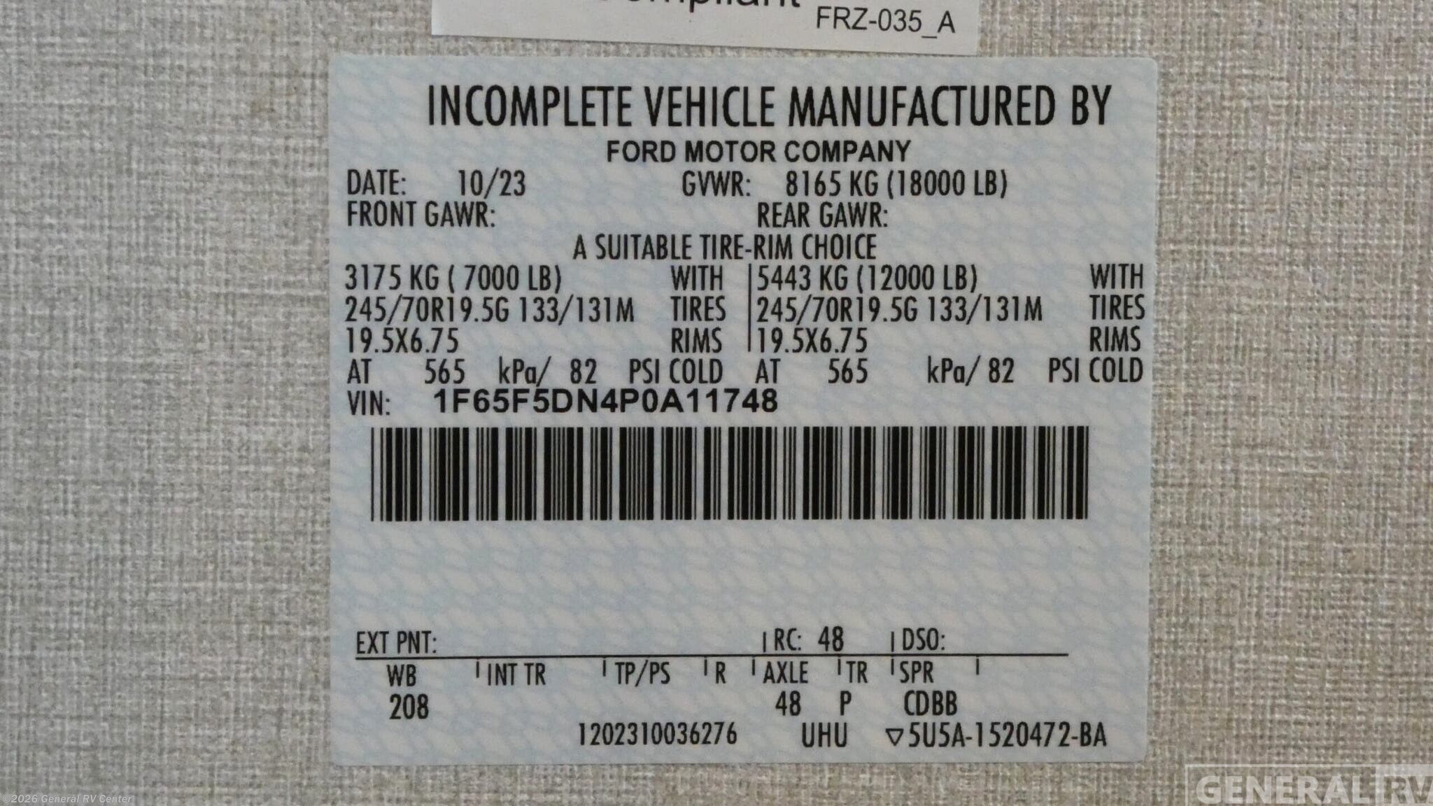 - VIN1F65F5DN4P0A11748