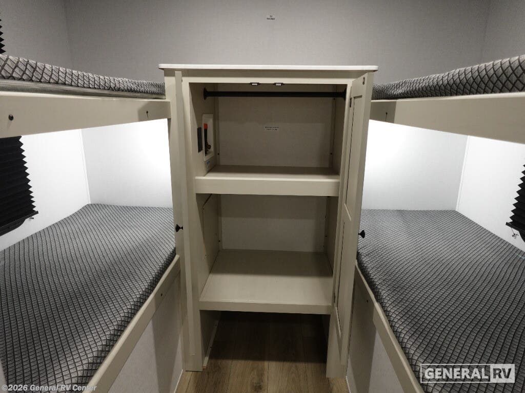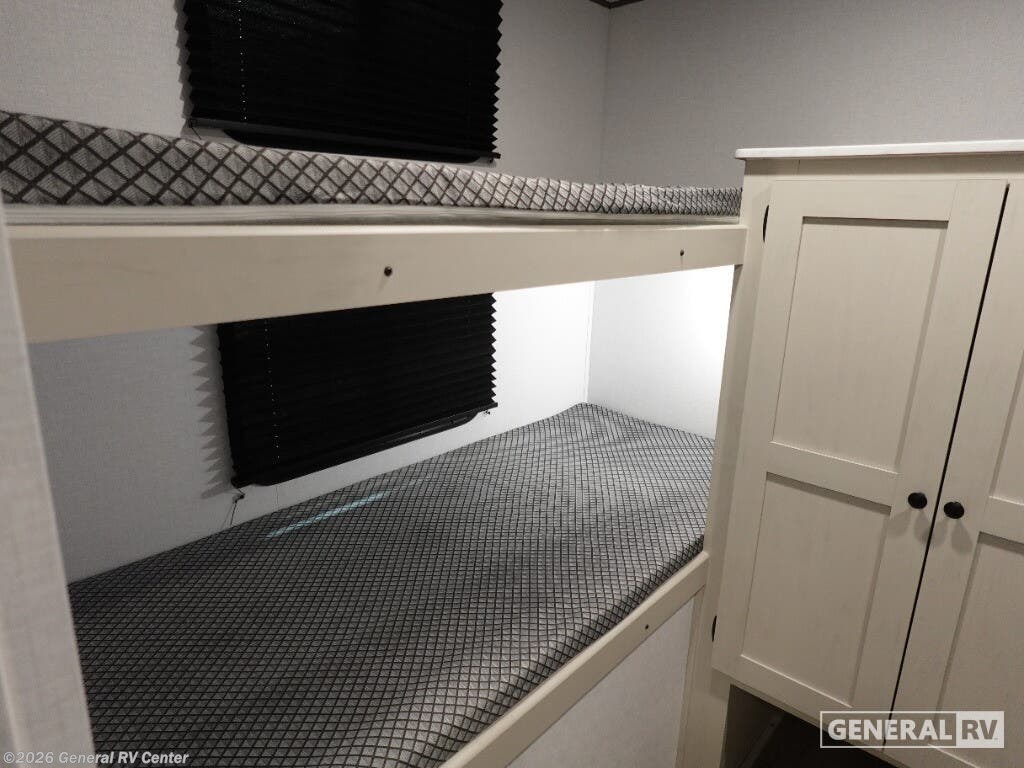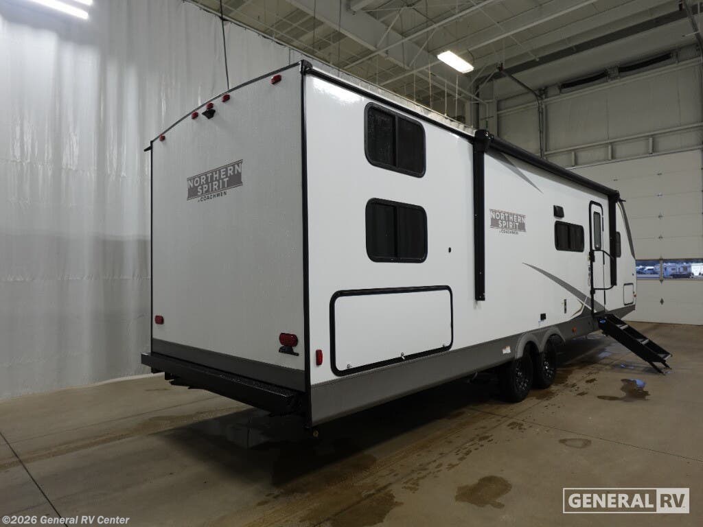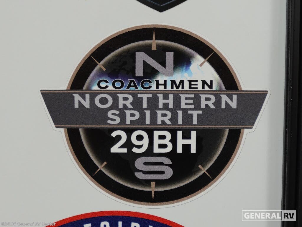 Discover the 2026 Coachmen Northern Spirit SE 29BH, a spacious and thoughtfully designed travel trailer perfect for families and friends seeking adventure. This RV comfortably sleeps up to 10, making it ideal for creating cherished memories on the road. The inviting interior features a cozy queen bed at the front, ensuring restful nights after days filled with exploration. The rear of the trailer offers two sets of 30x74-inch bunk beds, providing ample sleeping space for kids or guests. The open floorplan is designed for convenience and comfort, with a booth dinette and a sofa, perfect for relaxing or enjoying meals together. The kitchen is equipped with essential amenities, including a microwave and range, allowing you to whip up delicious meals with ease. The spacious pantry ensures you have plenty of storage for all your culinary needs. Outside, the generous awning creates a perfect space for outdoor relaxation, while the exterior storage compartments provide additional room for all your gear. With a length of over 33 feet, this RV offers a blend of comfort and functionality without compromising on style. Its robust construction and thoughtful features make it a reliable companion for all your travels. For more information or to see this model in person, visit your nearest General RV dealership and start your journey today!