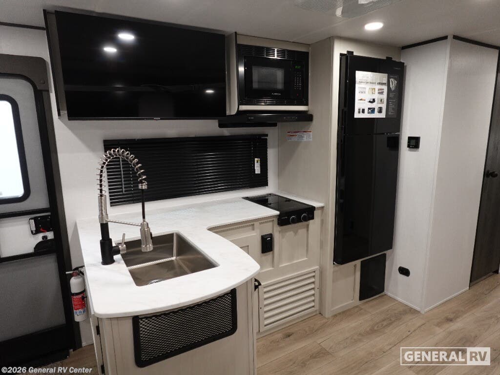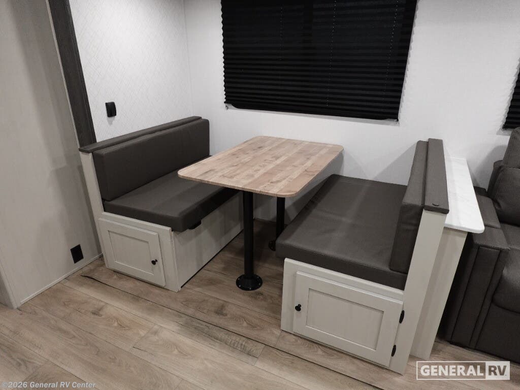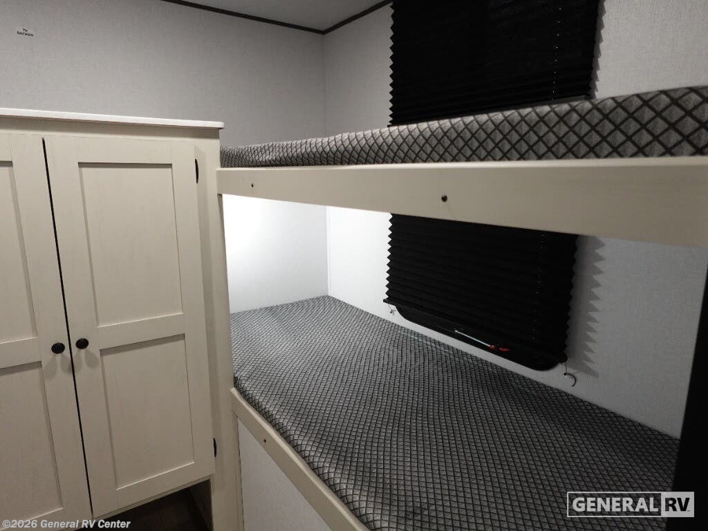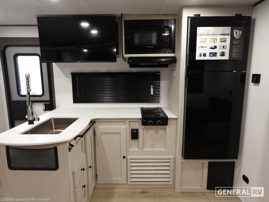 Discover the 2026 Coachmen Northern Spirit SE 29BH, a spacious and thoughtfully designed travel trailer perfect for families and friends seeking adventure. This RV comfortably sleeps up to 10, making it ideal for creating cherished memories on the road. The inviting interior features a cozy queen bed at the front, ensuring restful nights after days filled with exploration. The rear of the trailer offers two sets of 30x74-inch bunk beds, providing ample sleeping space for kids or guests. The open floorplan is designed for convenience and comfort, with a booth dinette and a sofa, perfect for relaxing or enjoying meals together. The kitchen is equipped with essential amenities, including a microwave and range, allowing you to whip up delicious meals with ease. The spacious pantry ensures you have plenty of storage for all your culinary needs. Outside, the generous awning creates a perfect space for outdoor relaxation, while the exterior storage compartments provide additional room for all your gear. With a length of over 33 feet, this RV offers a blend of comfort and functionality without compromising on style. Its robust construction and thoughtful features make it a reliable companion for all your travels. For more information or to see this model in person, visit your nearest General RV dealership and start your journey today!