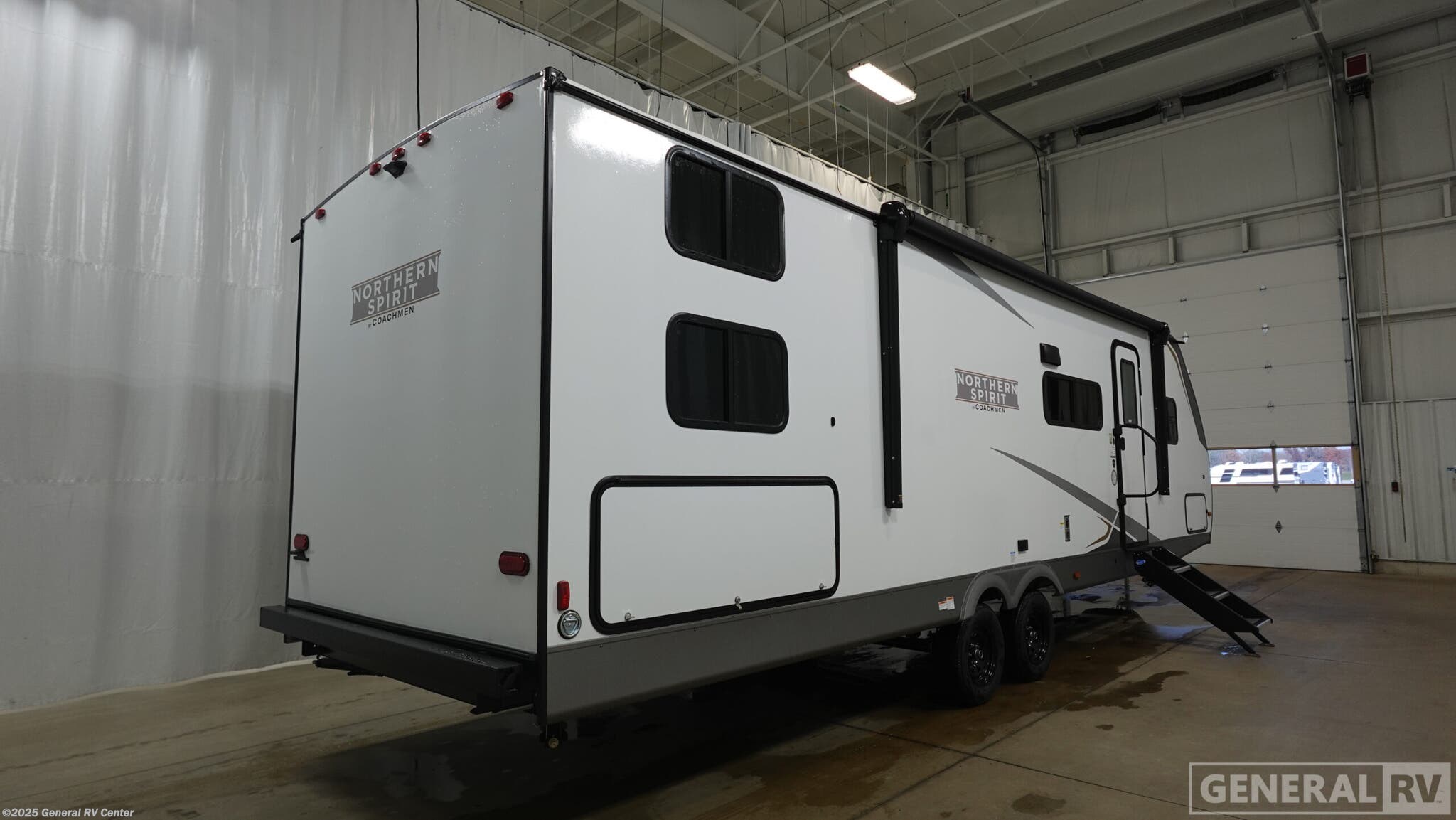 Coachmen Northern Spirit SE travel trailer 29BH highlights: Rear Private Bunkhouse Large Slide Out Outside Storage Queen Bed Booth Dinette If you enjoy camping with a larger group, this travel trailer will be the perfect fit! There are quad bunks in the rear bunkhouse plus washer and dryer prep if you choose to add these appliances. You'll enjoy your own space up front in the private bedroom, which features a walk-around queen bed, dual bedside wardrobes and nightstands, plus underbed storage for extra blankets! Everyone can meet in the combined kitchen and living area while the chef makes breakfast on the two burner cooktop. There is also a microwave here, plus a 12V refrigerator and large pantry for food storage. Your crew can dine at the booth dinette, relax on the sofa with a theater seating option, or head outdoors to sit under the 16' power awning! With any Northern Spirit SE travel trailer by Coachmen RV, you will enjoy affordable luxury at every turn! The durable construction includes dual Azdel sidewalls and rear wall, a Darco subfloor protective wrap/enclosure, plus a fully walkable roof with seamless Tufflex PVC covering. Each travel trailer includes Congoleum linoleum flooring, seamless Thermofoil countertops throughout, USB ports throughout to keep your gadgets charged, and night shades for added protection and privacy. And the on-demand tankless water heater, Twice Cool dual ducted A/C system, and 25,000 BTU ducted furnace will ensure your comfort wherever you decide to roam!
