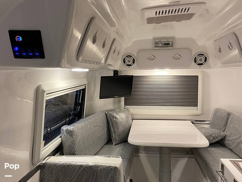 Inside, the Foxy 1 BK features a thoughtfully planned layout, including a convertible full-size bed that sleeps 2 people. During the daytime, the bed converts into a dual opposing couch setup with a table between them. Plus a one-sided dinette/workstation. The Foxy 1 BK features a functional kitchenette with stainless steel sink, 2-burner stove, hood fan, and an 8 cu. ft. Furrion Arctic 12 Volt Refrigerator and and a optional microwave. The flooring throughout is just like a boat, completely washable. Cover the floor with your choice of rugs or mats, knowing you can easily remove and clean the floor.