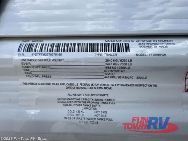 Enjoy your RV travels in style with this 2026 CrossRoads Fun Time 265BH. Be a part of the CrossRoads family with this 2026 CrossRoads Fun Time 265BH. The sleep capacity allows you to bring up to 7 along on your travels in this rig. Setup is a breeze thanks to one roomy slide.