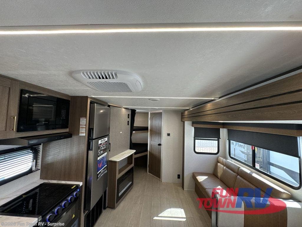 The campground will feel like home in this 2026 CrossRoads Fun Time 27BH. This 2026 CrossRoads Fun Time 27BH welcomes you into the CrossRoads family! The sleep capacity allows you to bring up to 8 along on your travels in this rig.
