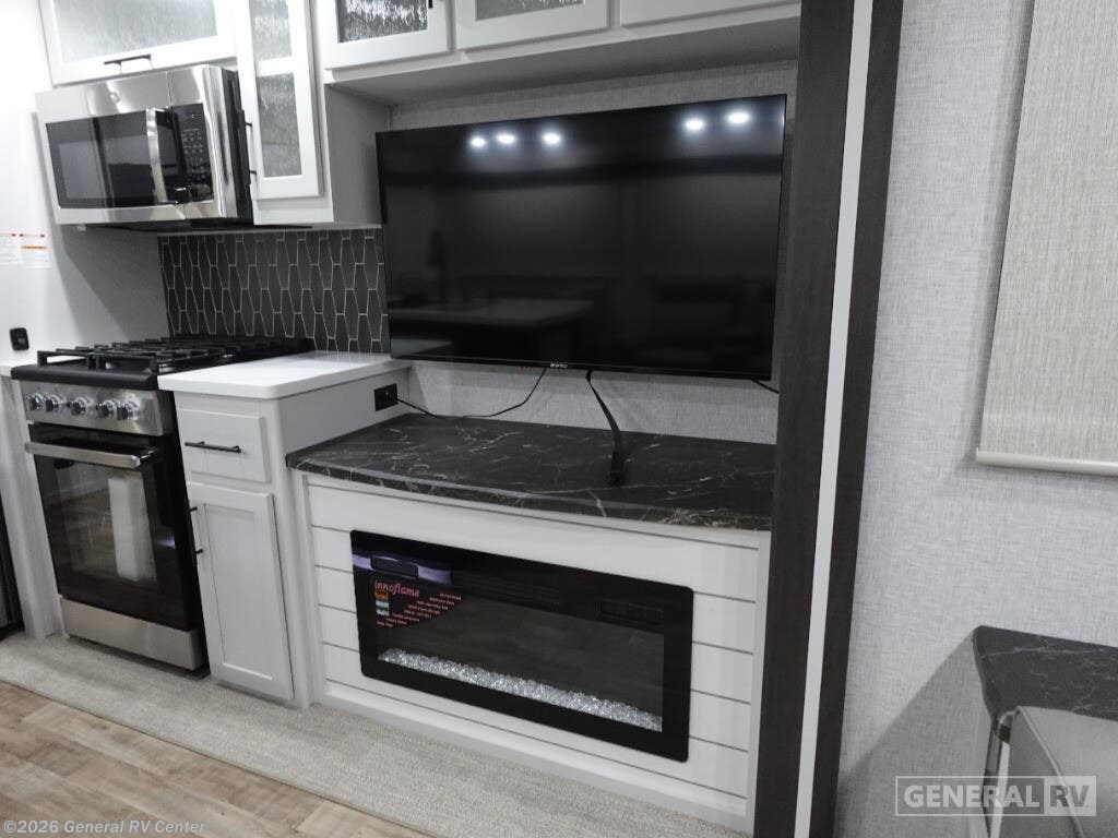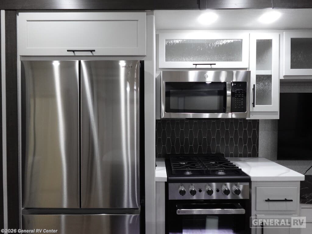 Experience the epitome of luxury and comfort with the 2026 Crossroads Hampton 372FDB. This stunning RV is designed for those who seek a home-away-from-home experience, featuring a spacious layout with three slides that expand your living space to new heights. The heart of this RV is its inviting living area, complete with a 50" LED HDTV and plush theater seating, perfect for cozy movie nights or relaxing after a day of adventure. The residential-style kitchen, equipped with a four-burner cooktop and a large refrigerator, makes meal preparation a breeze, while the free-standing table offers an elegant dining experience. Retreat to the master suite, where a king-sized bed promises restful nights. The cleverly designed floorplan includes ample storage with wardrobes and linen closets, ensuring everything has its place. The luxurious bathroom features a 48" shower with a seat, providing a spa-like experience on the road. With washer and dryer prep, staying fresh and clean is effortless. At 41 feet in length, this RV offers all the comforts of home, making it perfect for extended stays or weekend getaways. Visit your nearest General RV dealership to explore this exceptional model and start your next adventure in style.
