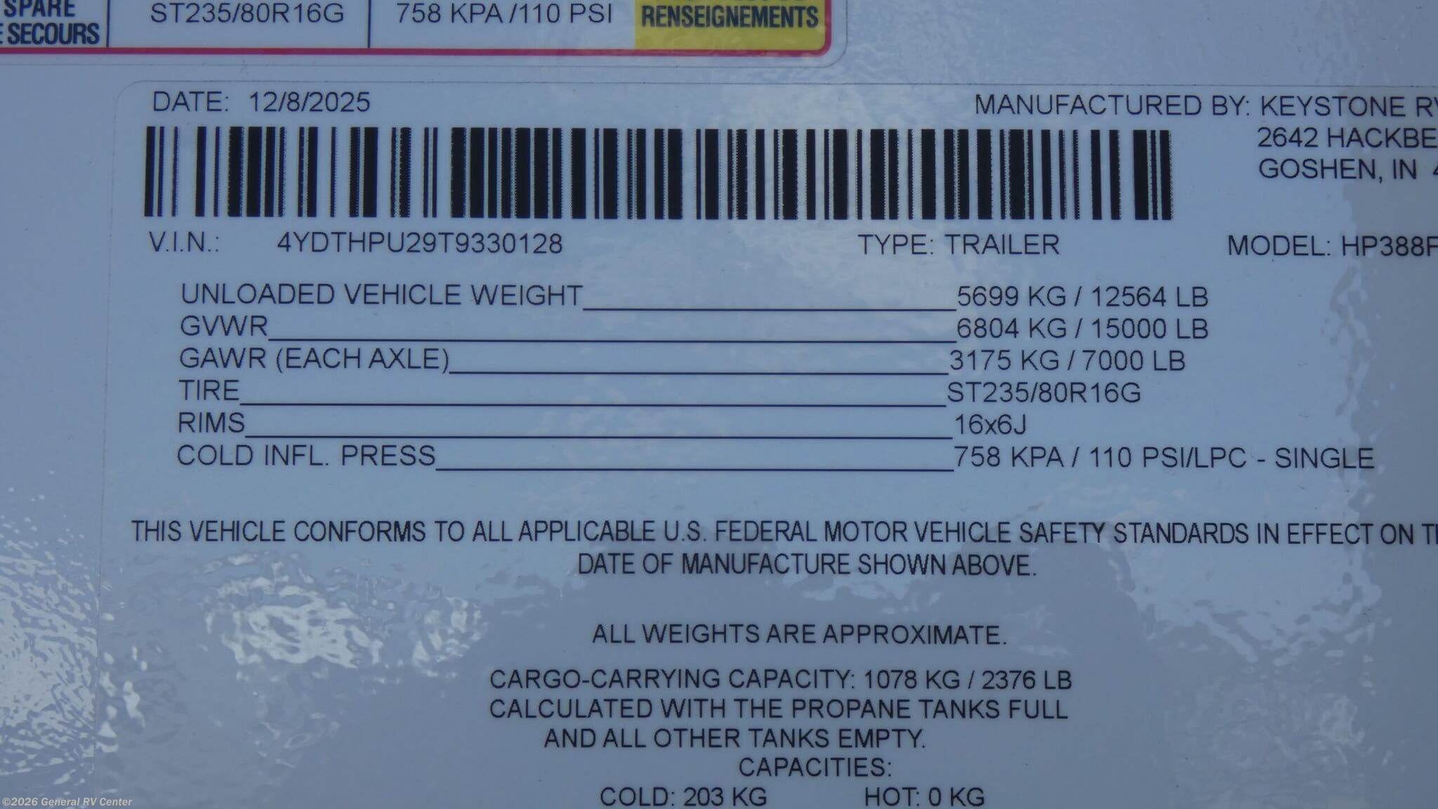 - VIN4YDTHPU29T9330128