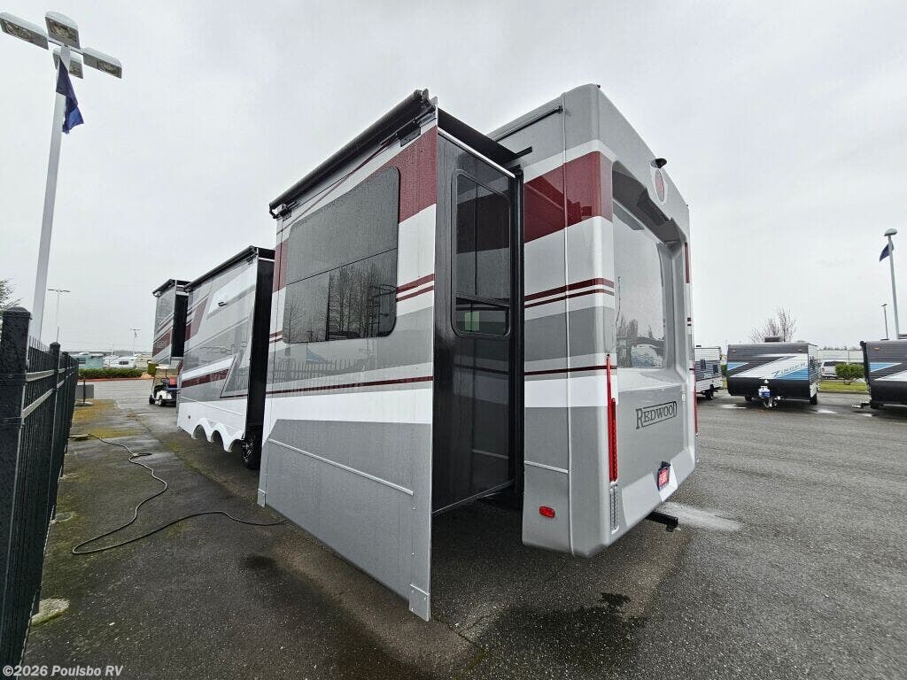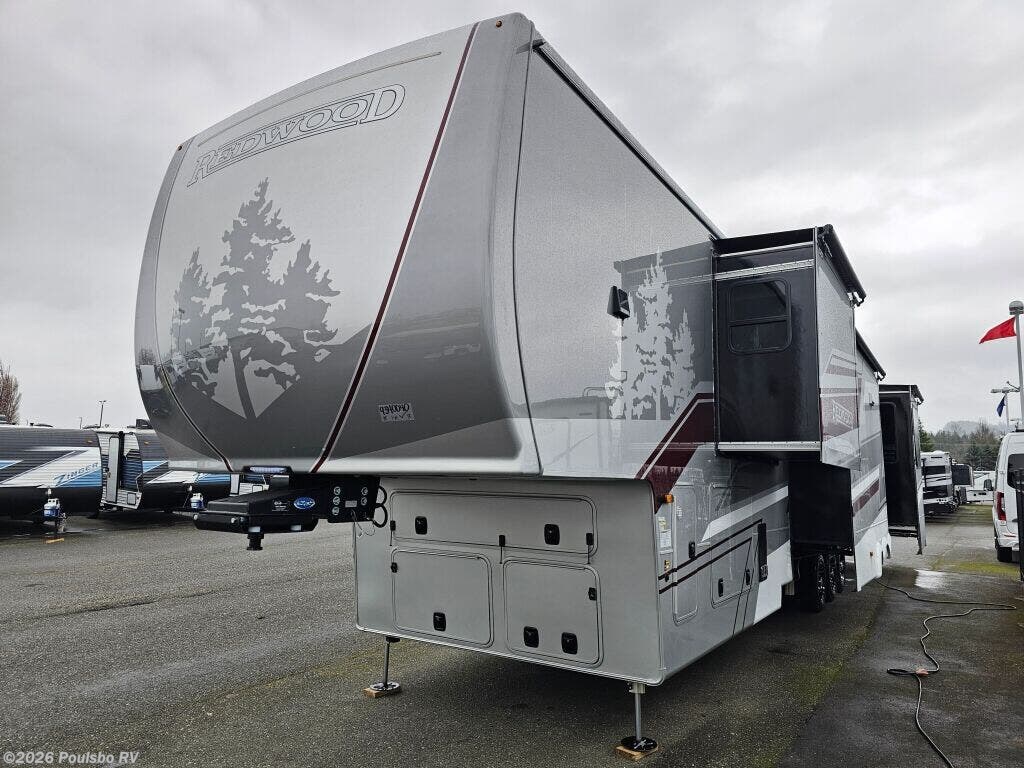 Experience the ultimate in comfort and versatility with the 2026 Crossroads Redwood RW415RD. This new 45.1-foot luxury fifth wheel offers ample living space enhanced by five slide outs that open up the interior for a spacious and inviting atmosphere. Ideal for extended RVing adventures, it features a thoughtful layout designed to maximize convenience and relaxation on the road. The spacious living area is perfect for family and friends to gather, unwind, and enjoy entertainment together. With a dry weight of 17,194 pounds and a GVWR of 21,000 pounds, it balances substantial durability with manageable towing. The large hitch weight of 3,208 pounds ensures a stable connection for your travels. Inside, you will appreciate the well-crafted interior that prioritizes comfort and functionality, with modern amenities designed to make your stay enjoyable. The Redwood RW415RD does not include bunk beds or a bunkhouse, providing a more open and versatile floorplan ideal for couples or families seeking flexible sleeping accommodations. Convenience is enhanced with available features like automatic leveling jacks, making setup quick and effortless at any campsite. Audio systems are built in to elevate your entertainment experience, while ample storage options are integrated throughout to keep your gear organized. Whether you are planning a weekend getaway or full-time living, this unit brings the space and features you need to relax and enjoy the journey. As a new model, it offers the latest advancements in comfort and design from Crossroads. As a family-owned, award-winning local RV dealer with multiple locations in Sumner, Everett, Kent, and Mt. Vernon Washington, Poulsbo RV is here to help you find the perfect RV. Stock#: M3770, VIN: 4YDFRWV37T9340040.