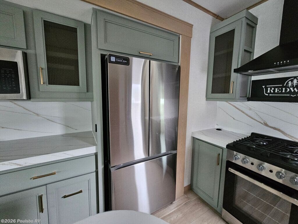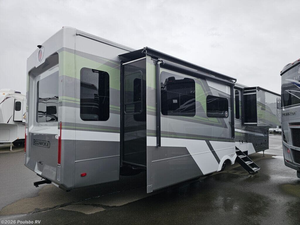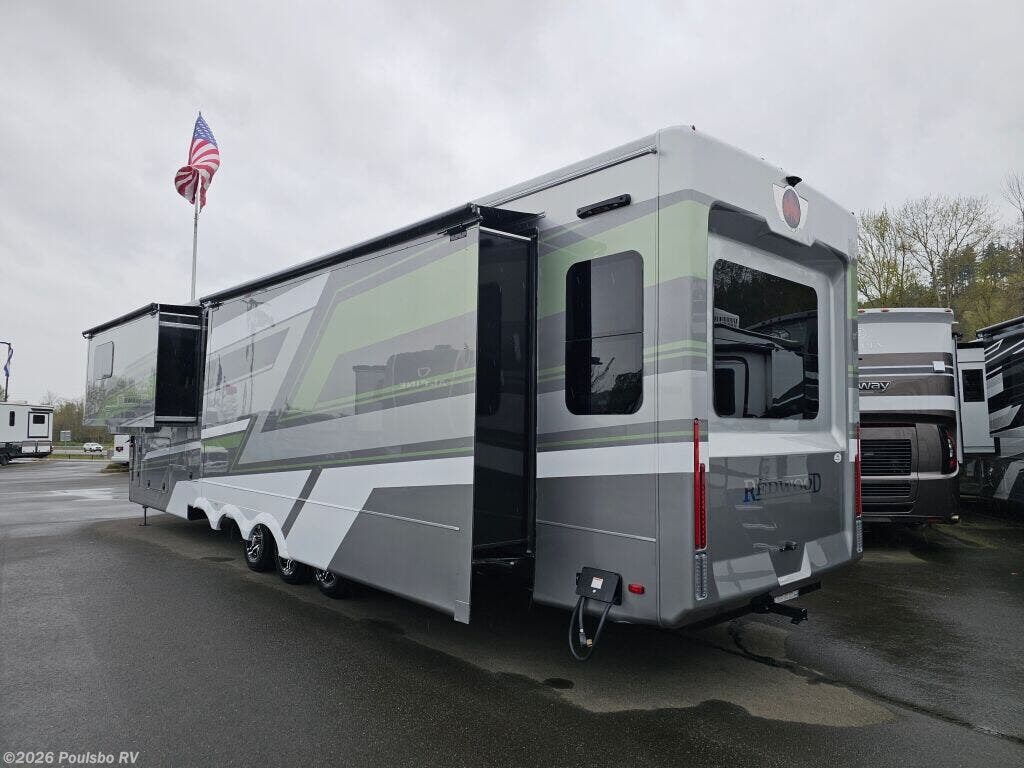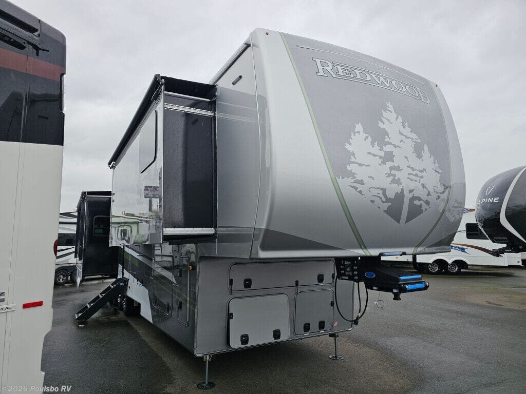 The 2026 Crossroads Redwood 412GK is a spacious and luxurious new fifth wheel designed for those who appreciate comfort and versatility on the road. Measuring 45.1 feet in length, this model offers an expansive living area that enhances your RVing experience with its four slide outs, creating more open space for relaxation and entertainment. Sleeping accommodations are designed to comfortably host four people, making it ideal for small families or couples who want extra space. Constructed with quality and durability in mind, the Redwood 412GK features a dry weight of 17,090 pounds and a hitch weight of 3,308 pounds, ensuring stable towing and easy handling on your travels. This model includes large capacity tanks with 88 gallons gray water and 44 gallons black water capacities, so you can enjoy extended trips with fewer stops. The Redwood is packed with convenient amenities and flexible living options that cater to your lifestyle, offering you the freedom to travel and unwind with ease and confidence. The inclusion of leveling jacks further enhances stability and setup convenience at campsites. As a family-owned, award-winning local RV dealer with multiple locations in Sumner, Everett, Kent, and Mt. Vernon Washington, Poulsbo RV here to help you find the perfect RV. Stock#: S966, VIN: 4YDFRWV35T9340053