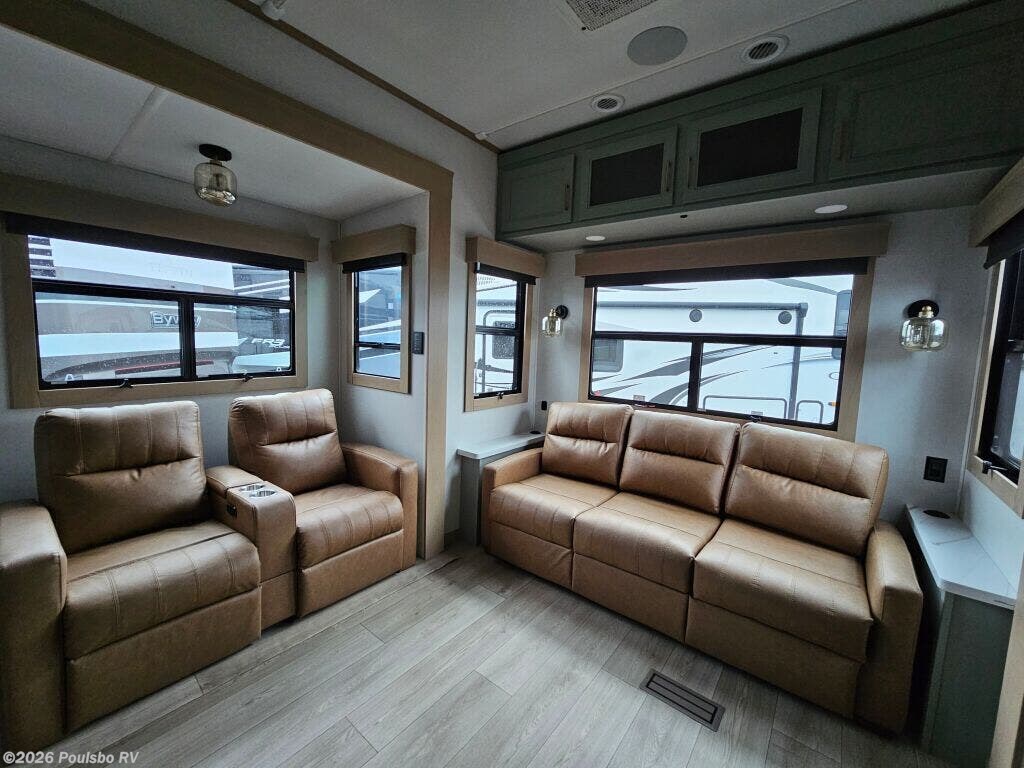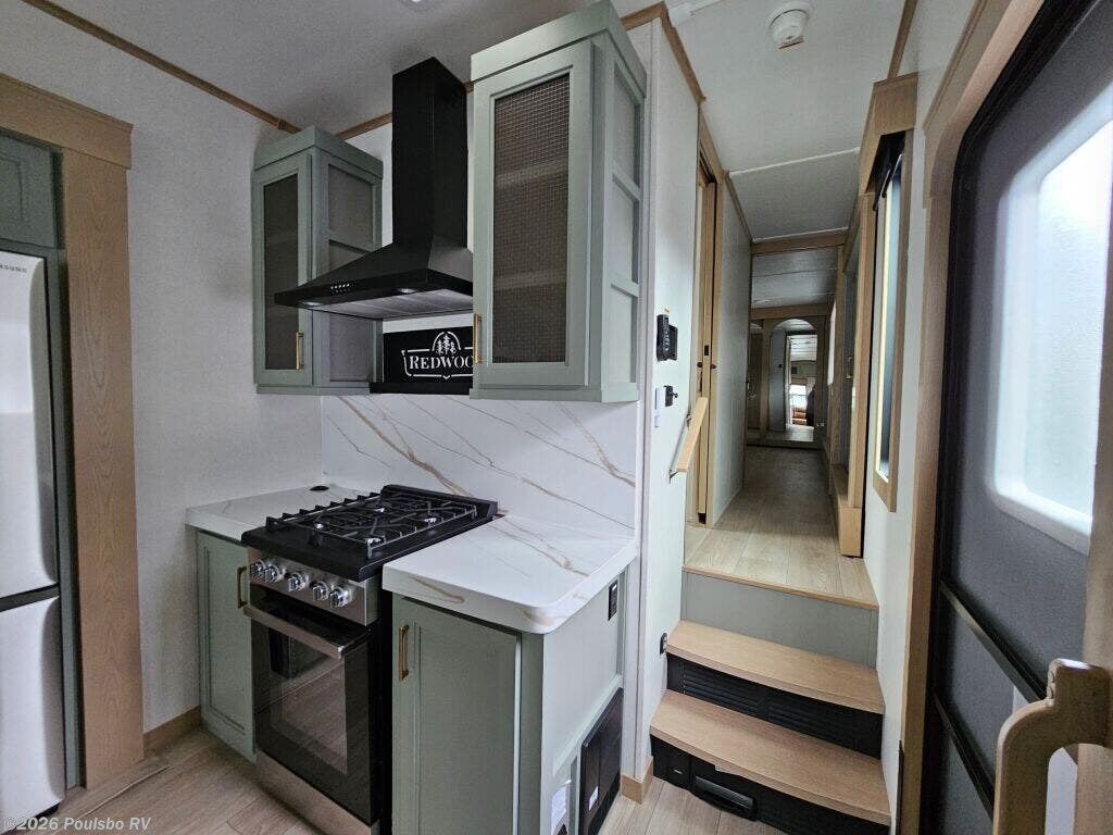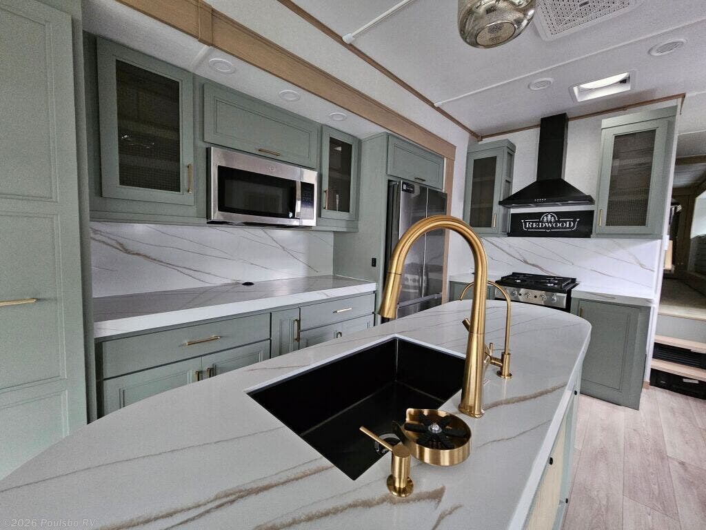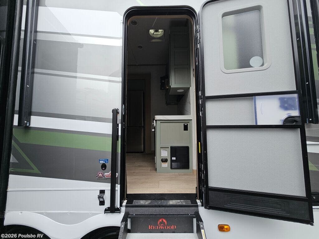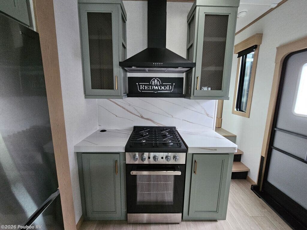 The 2026 Crossroads Redwood 412GK is a spacious and luxurious new fifth wheel designed for those who appreciate comfort and versatility on the road. Measuring 45.1 feet in length, this model offers an expansive living area that enhances your RVing experience with its four slide outs, creating more open space for relaxation and entertainment. Sleeping accommodations are designed to comfortably host four people, making it ideal for small families or couples who want extra space. Constructed with quality and durability in mind, the Redwood 412GK features a dry weight of 17,090 pounds and a hitch weight of 3,308 pounds, ensuring stable towing and easy handling on your travels. This model includes large capacity tanks with 88 gallons gray water and 44 gallons black water capacities, so you can enjoy extended trips with fewer stops. The Redwood is packed with convenient amenities and flexible living options that cater to your lifestyle, offering you the freedom to travel and unwind with ease and confidence. The inclusion of leveling jacks further enhances stability and setup convenience at campsites. As a family-owned, award-winning local RV dealer with multiple locations in Sumner, Everett, Kent, and Mt. Vernon Washington, Poulsbo RV here to help you find the perfect RV. Stock#: S966, VIN: 4YDFRWV35T9340053