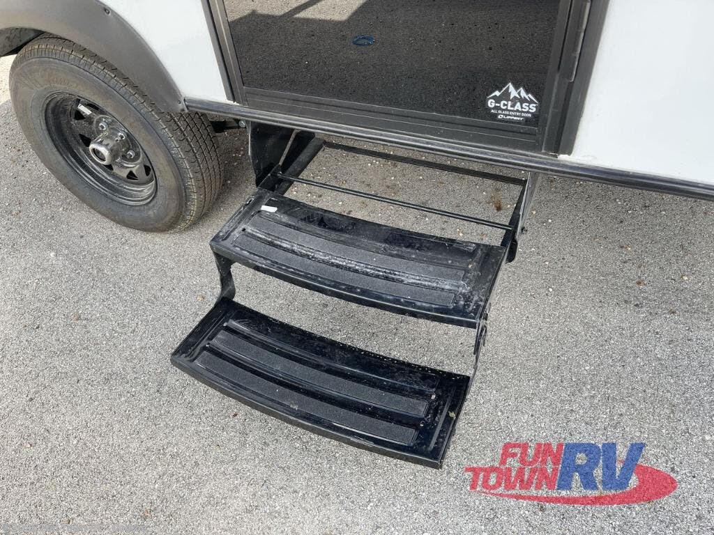 This lightweight travel trailer will be perfect for your crew of four campers! There is a front queen bed with a closet and overhead cabinets to keep your things organized, and your guests or little ones can sleep on the bunk beds with a hinged top bunk. The galley kitchen includes a microwave, refrigerator, sink and storage space for all your needs, and the private bath with a toilet and shower means you won't have to leave your camper in the middle of the night!