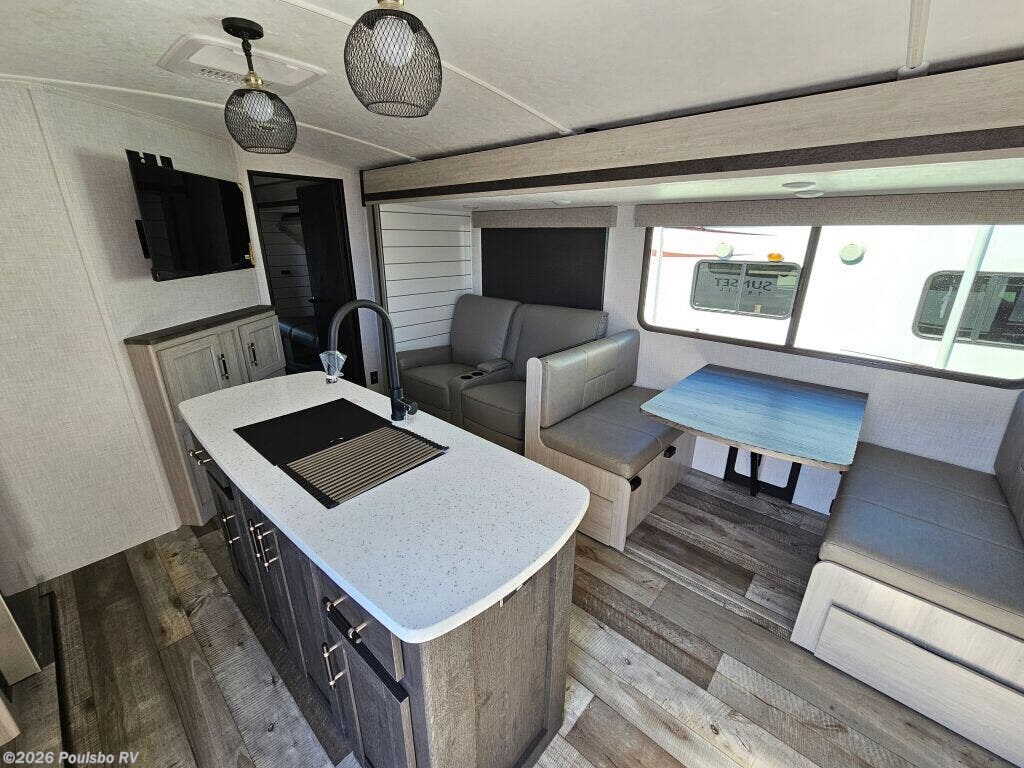 Introducing the 2026 CrossRoads Sunset Trail SS331BH, a remarkable RV designed for families seeking adventure and comfort on the open road. This spacious trailer boasts a length of 37.4 feet, providing ample room for relaxation and entertaining. With a dry weight of 8195 pounds and a hitch weight of 1165 pounds, it is manageable and ready for any journey. The new condition of this model ensures that you are getting a top-notch experience. Inside, the living area is thoughtfully designed, offering sleeping accommodations for up to 11 people, making it perfect for family outings or trips with friends. The RV features three slide-outs that enhance the living space, allowing everyone to stretch out and enjoy their surroundings. Equipped with a bunkhouse, it ensures kids have their own area, promoting comfort and convenience. The front and rear power leveling jacks take the hassle out of setting up camp, making your arrival stress-free. Enjoy your favorite tunes with integrated audio systems that elevate your outdoor and indoor experiences. This model is a versatile choice for anyone looking to explore the great outdoors while enjoying modern amenities. As a family-owned, award-winning local RV dealer with multiple locations in Sumner, Everett, Kent, and Mt. Vernon Washington, Poulsbo RV is here to help you find the perfect RV. Stock#: S851, VIN: 4YDTSSR29TJ350035.