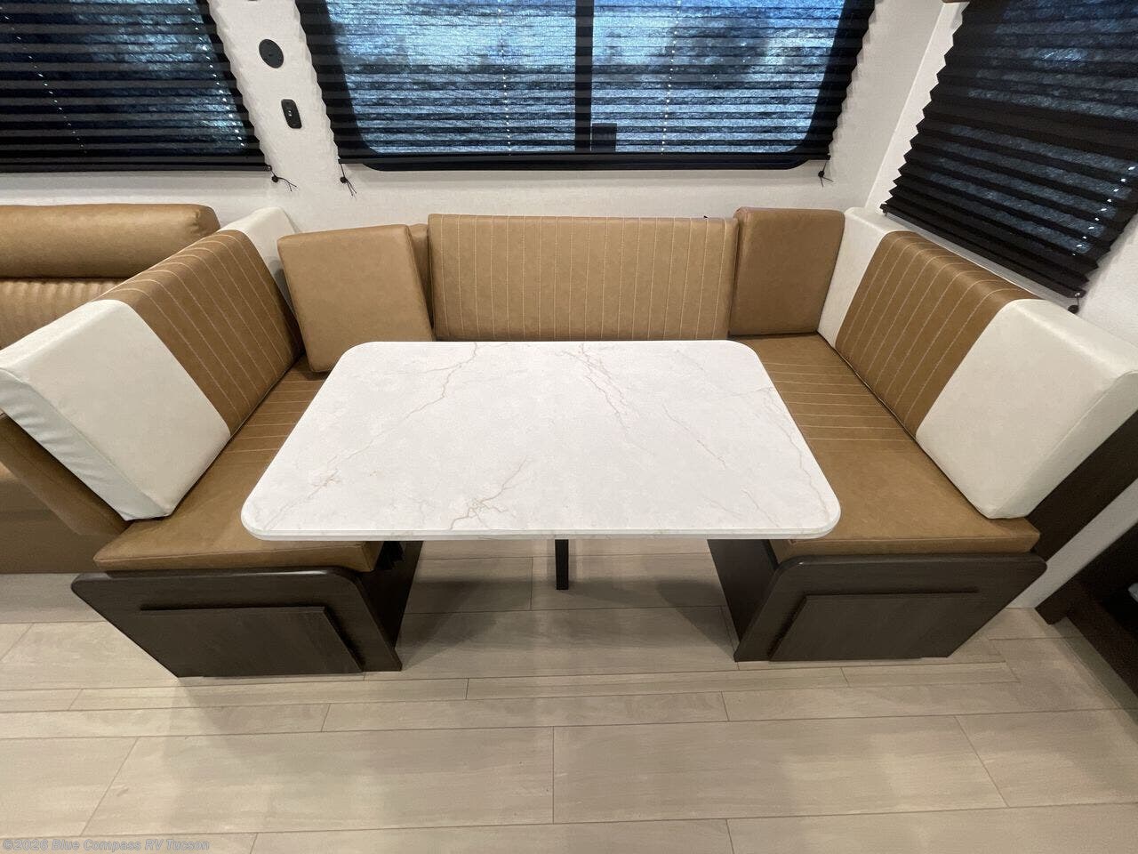 Comfort comes easy in this spacious travel trailer! There is a large slide out in the main living area that houses the booth dinette and jackknife sofa, and there are dual lounge chairs in the back for even more comfort! The chef of your group can whip up their best meals in the full kitchen, and the pantry will let them store snacks, dry goods and more! You'll appreciate having a full bath onboard so you don't have to leave the camper in the middle of the night, and having a front bedroom with a queen bed will make it feel more like home! One of the dual entry doors is even found here so you can slip out in the morning for an early jog!