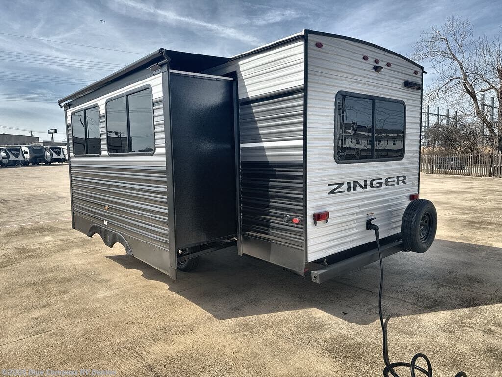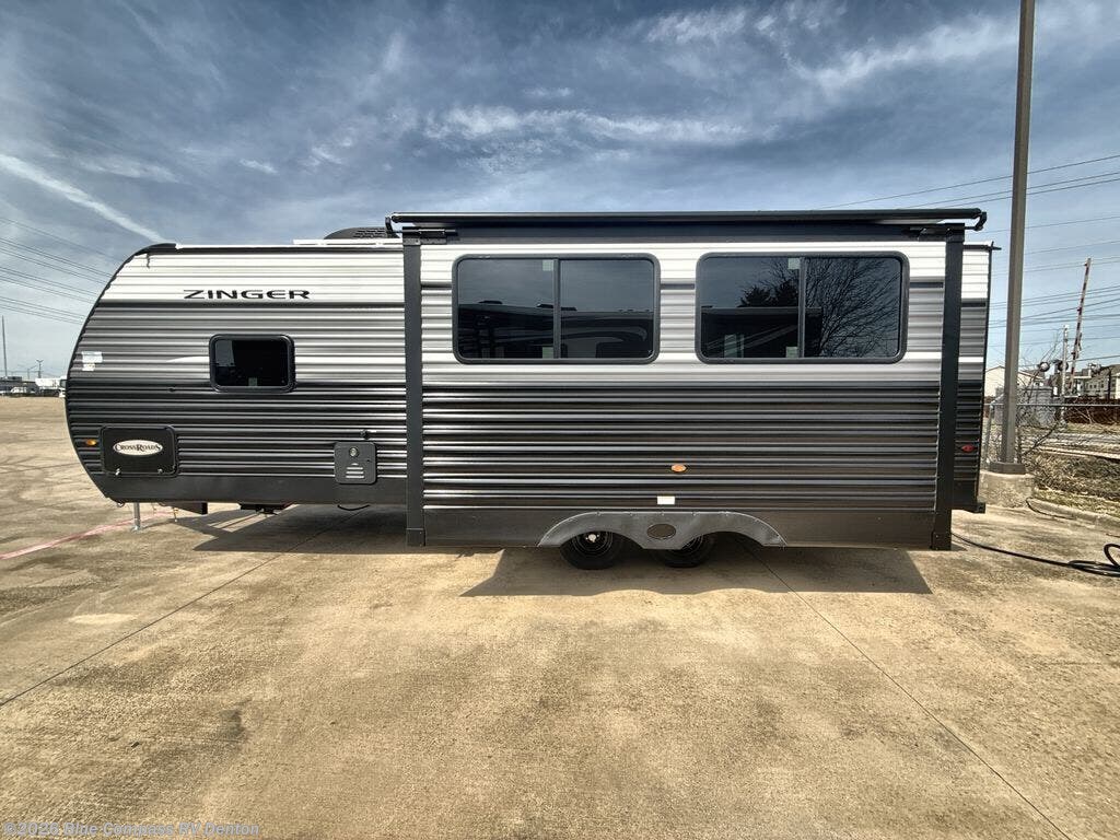 Lead your family to a great vacation getaway in any one of these CrossRoads RV Zinger travel trailers! They feature an aerodynamic front end, Keyed-Alike door locks, Secure Stance entry steps, and exterior speakers with LED accents. The interior of each model includes kitchen backsplash and pressed countertops, along with generous storage, designer valances, and LED lighting to keep your space well lit. You will also appreciate USB ports to keep your electronics charged up, and there is an AM/FM stereo with a Bluetooth soundbar to keep the party going!