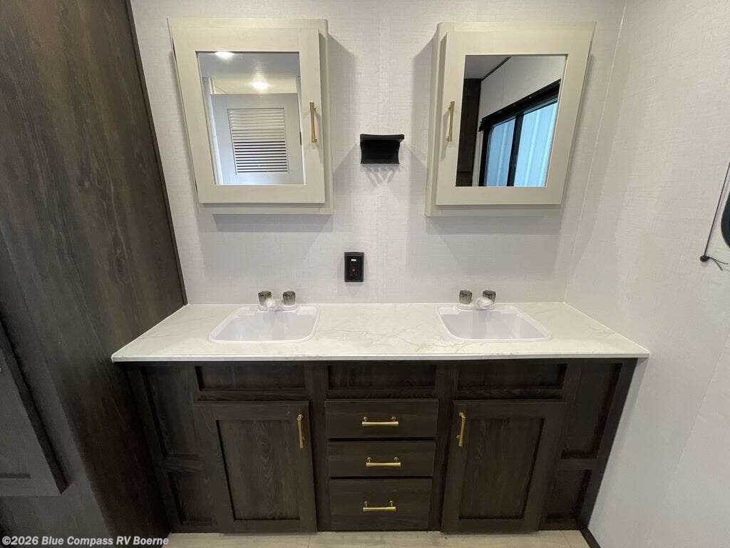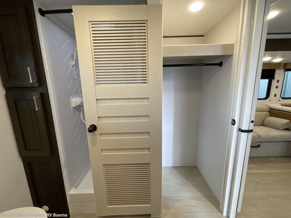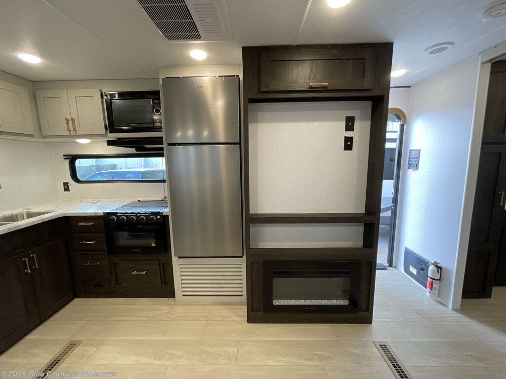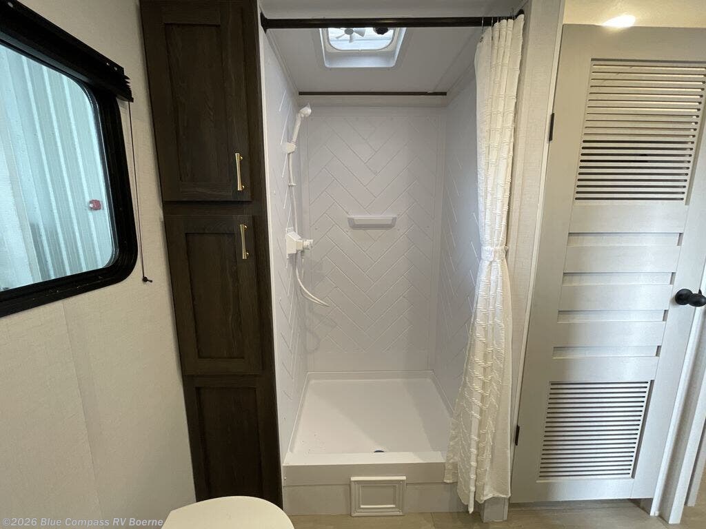 You need this award-winning travel trailer for your next weekend getaway! The full rear bathroom is decked out in features you're going to love like the dual-sink vanity for two to get ready at once, the linen closet next to the 30" x 36" shower and the second linen closet across from the closet with washer and dryer prep. After a fun-filled day outdoors, you can head inside and relax on either the 60" jackknife sofa and enjoy the entertainment center with a fireplace or grab a snack from the 10-cu. ft. refrigerator and play a few card games at the U-shaped dinette. The front private bedroom features a 60" x 74" RV queen bed with shirt closets on either side of it to keep your clothes looking nice!